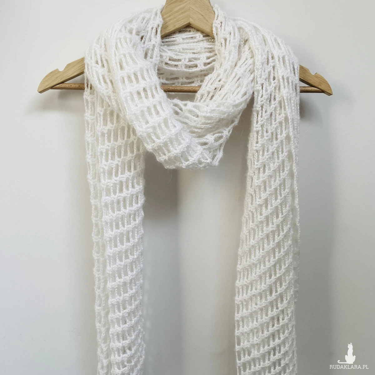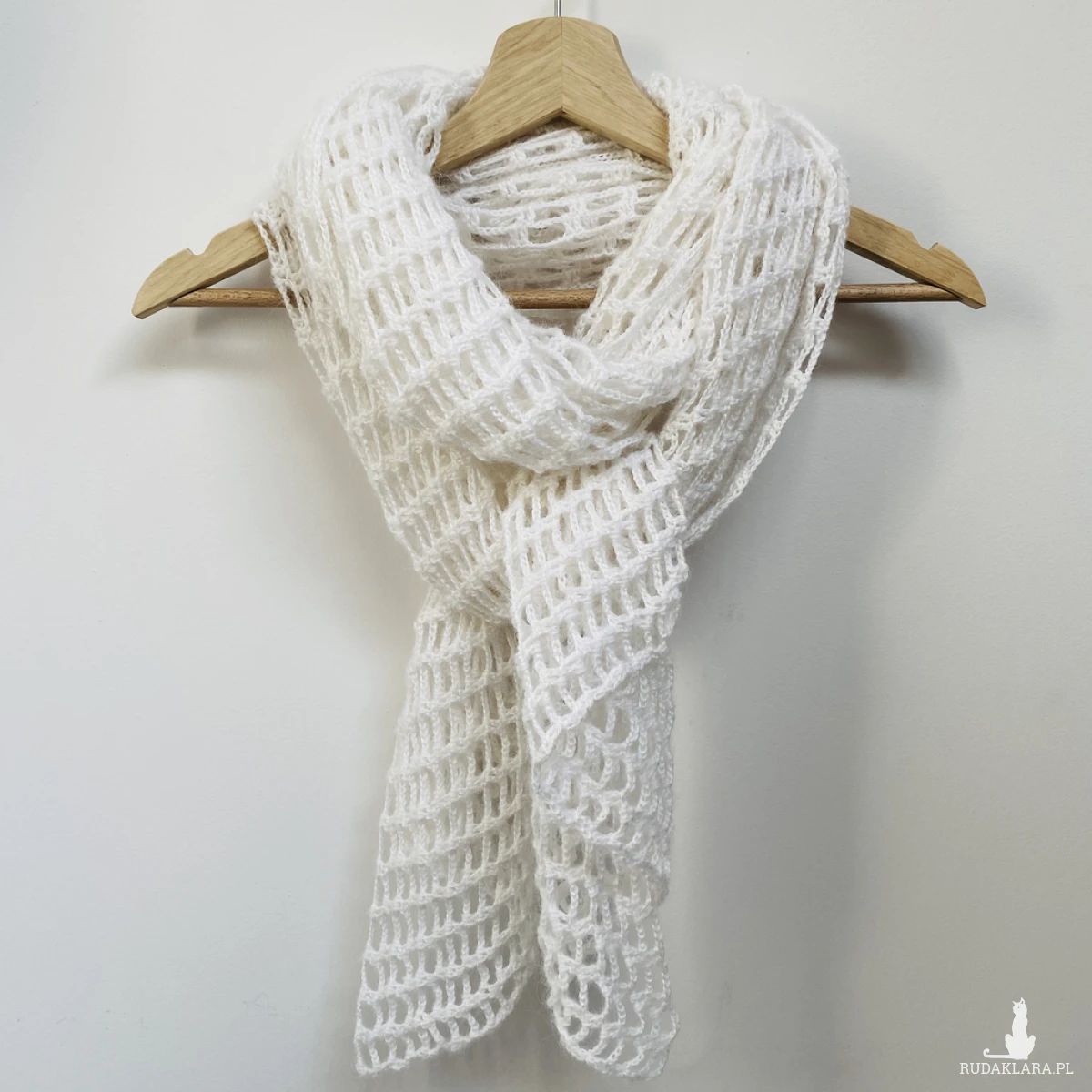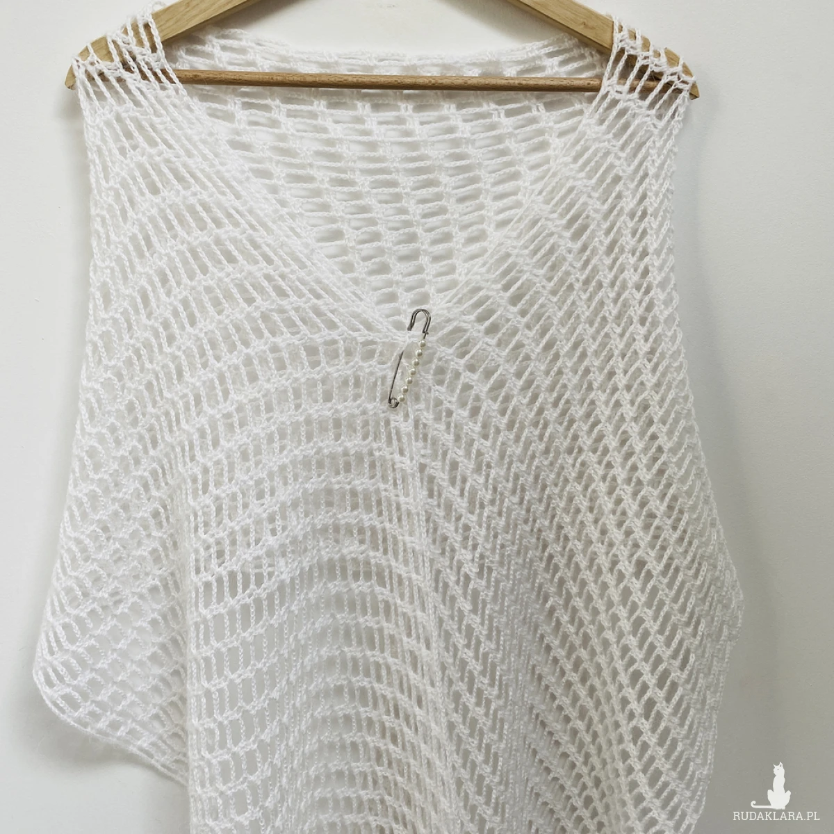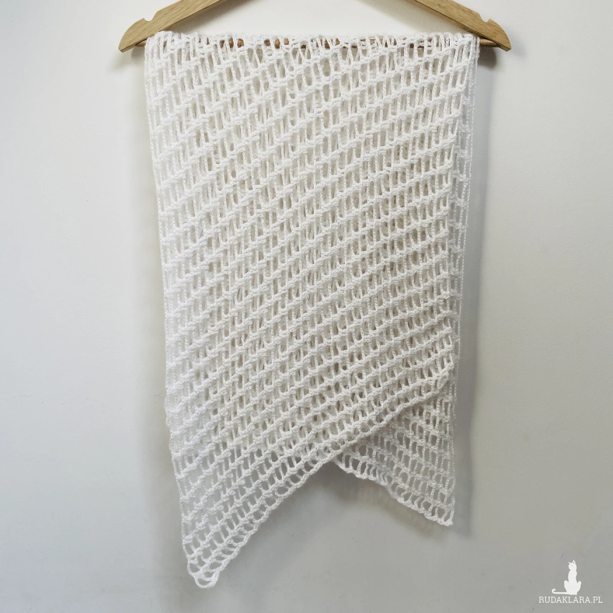Elegancki, lekki szal ślubny wykonany ręcznie na szydełku z wysokiej jakości, miękkiej włóczki z delikatnym włoskiem Papatya Angora z certyfikatem OEKO-TEX® Standard 100. Klasyczny biały kolor sprawia, że etola idealnie pasuje do sukni ślubnej, ale sprawdzi się także po uroczystości jako subtelny dodatek do eleganckich i codziennych stylizacji.
