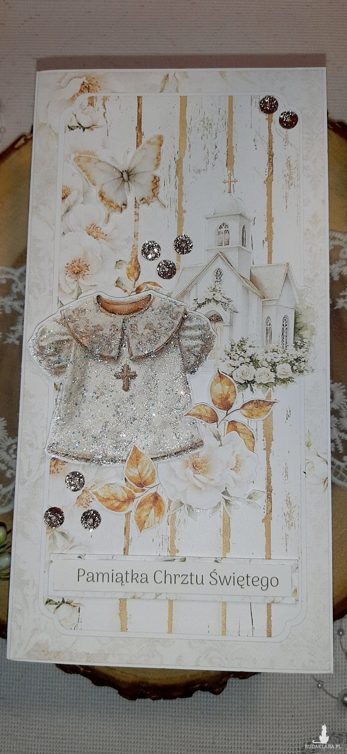 Kartka okolicznościowa, ręcznie wykonana metodą scrapbooking. Kartka do koperty. Oklejona z każdej strony. W środku znajduje się kartka podklejona taśmą dwustronną na życzenia. Mogę też wydrukować życzenia. Wymiary kartki to 20,5x10,5 cm. W zestawie z kopertą.