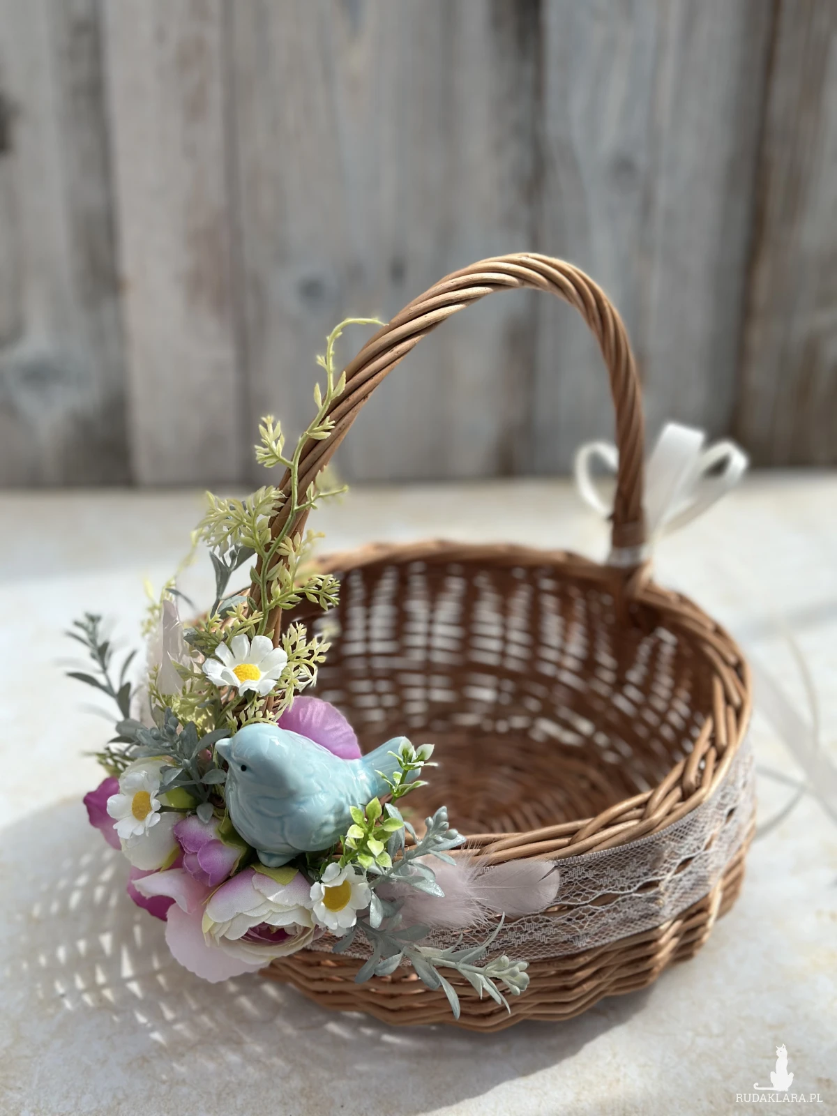 Koszyczek wielkanocny z dekoracją, koszyk wiklinowy