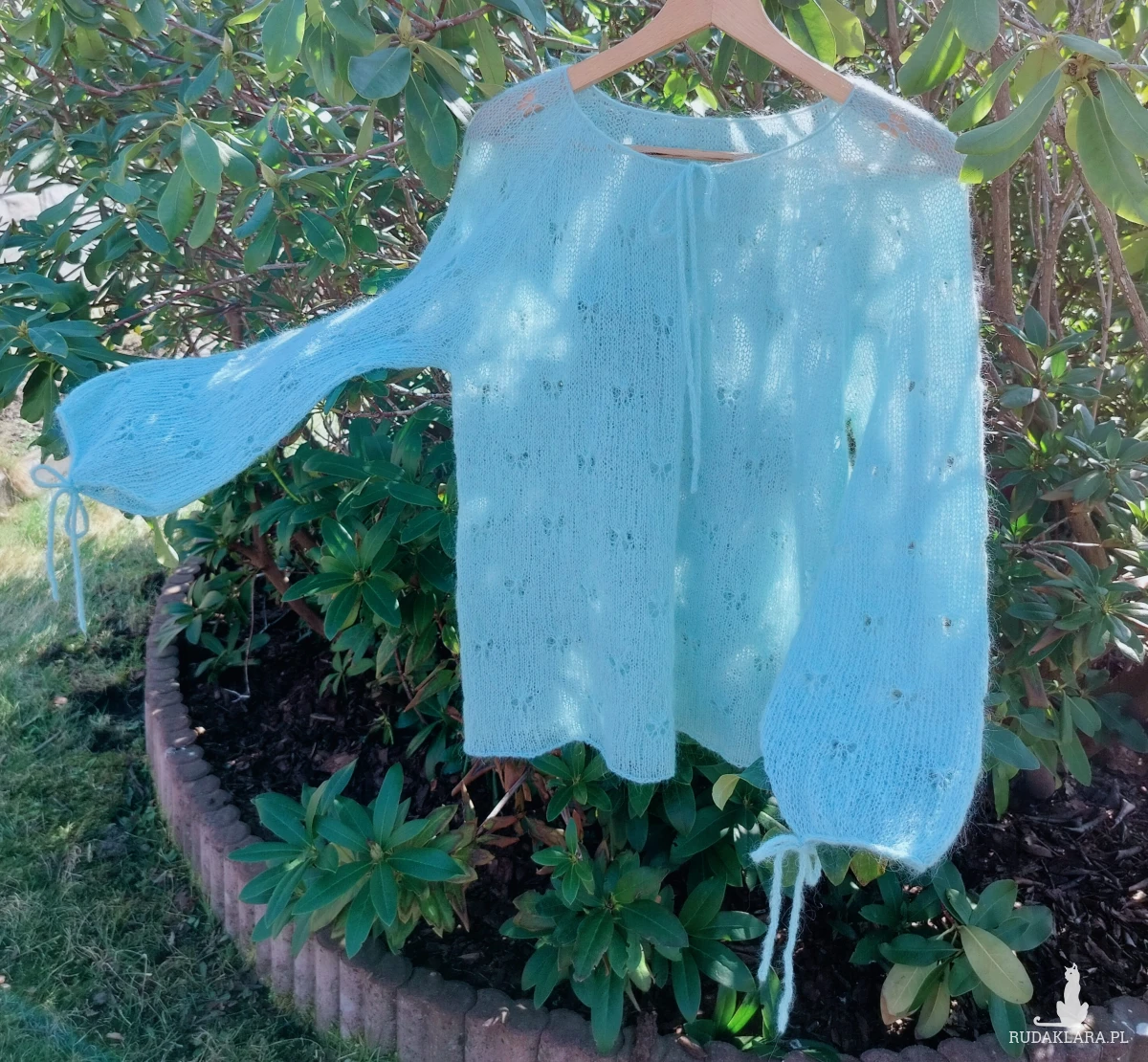 Ręcznie wykonana bluzka we wzory motylków z wysokiej jakości moheru – miękka, lekka i bardzo przyjemna w dotyku. Idealna na różne okazji. Spraw sobie przyjemność.
