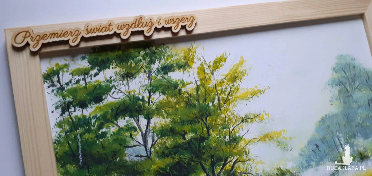 Cena obejmuje obraz, ramę oraz dekoracyjny napis - otrzymujesz zestaw gotowy do wręczenia a personalizacja sprawia, że świetnie się sprawdzi jako oryginalny prezent na parapetówkę, urodziny, ślub, czy każdą inną okazję. Ręcznie malowany obraz jest czymś więcej niż dekoracją - to gotowa do wręczenia opowieść zamknięta w eleganckiej oprawie. Nie jest tylko obrazem na ścianie, ale codziennym przypomnieniem o marzeniach i odkrywaniu nowego.