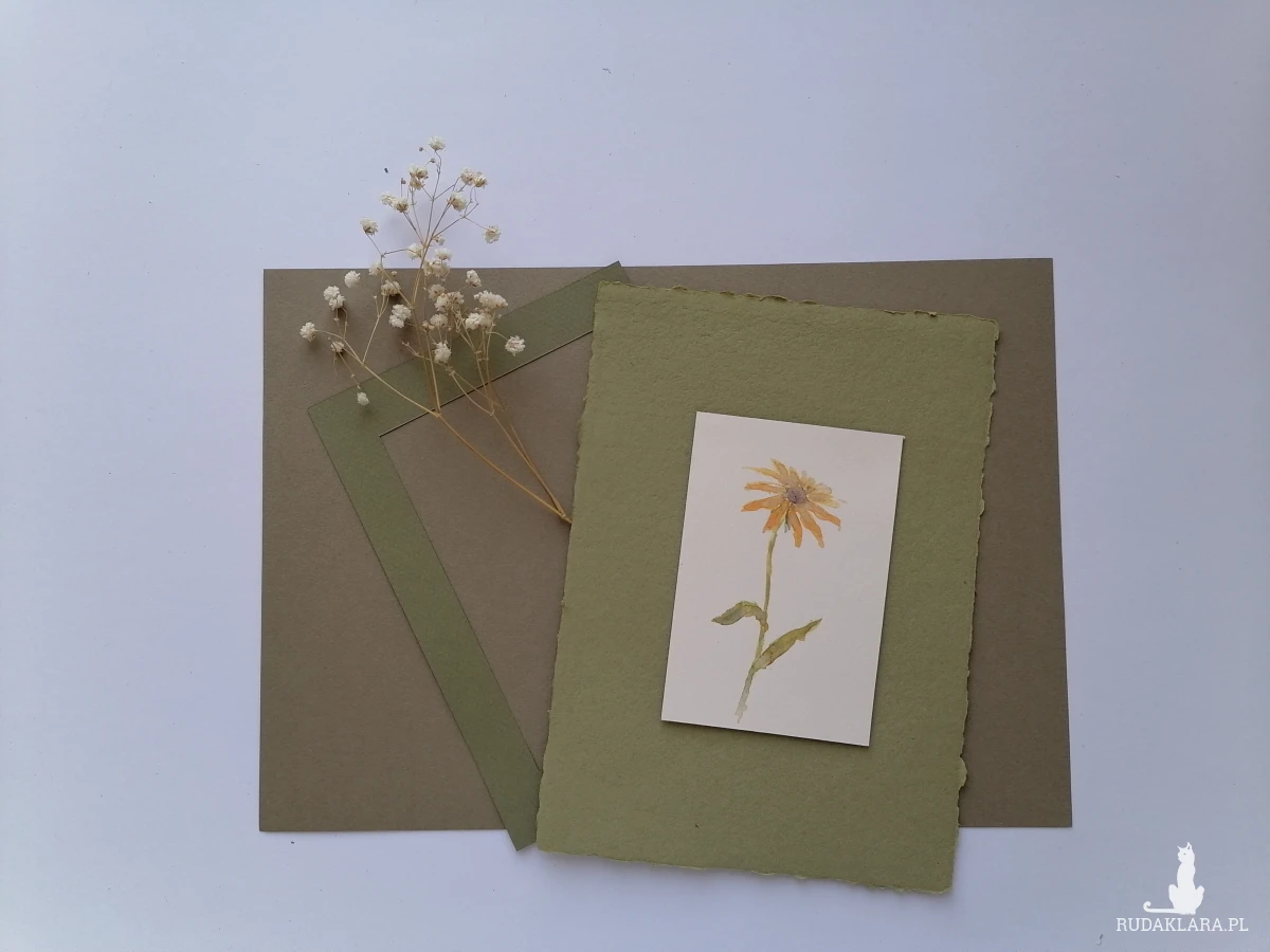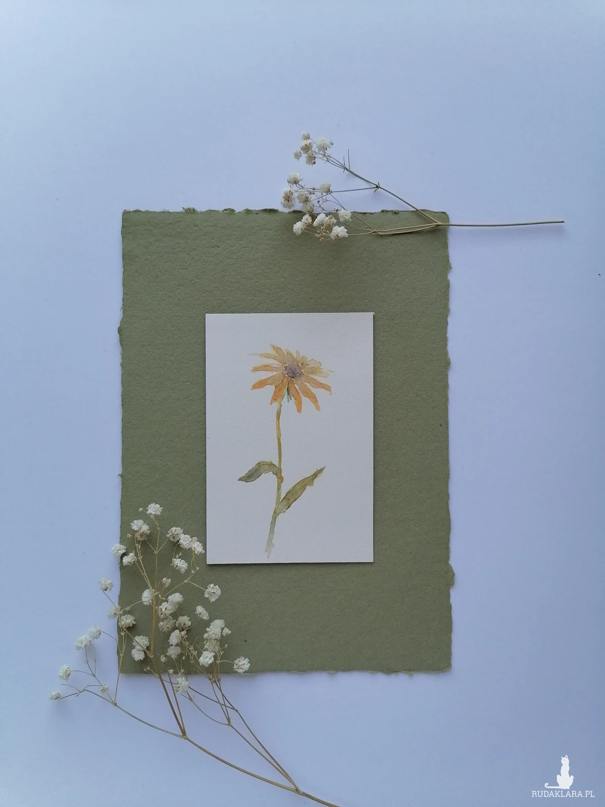 Do tego obrazka mam szczególny sentyment - "pozująca" do niego rudbekia pochodzi z ogrodu mojej babci. Kwiaty przypominające małe słoneczka rosną tam, odkąd pamiętam. I chyba znam je już na pamięć, bo żadnego z dotychczas malowanych kwiatów nie namalowałam jeszcze tak szybko i z tak wielką przyjemnością.