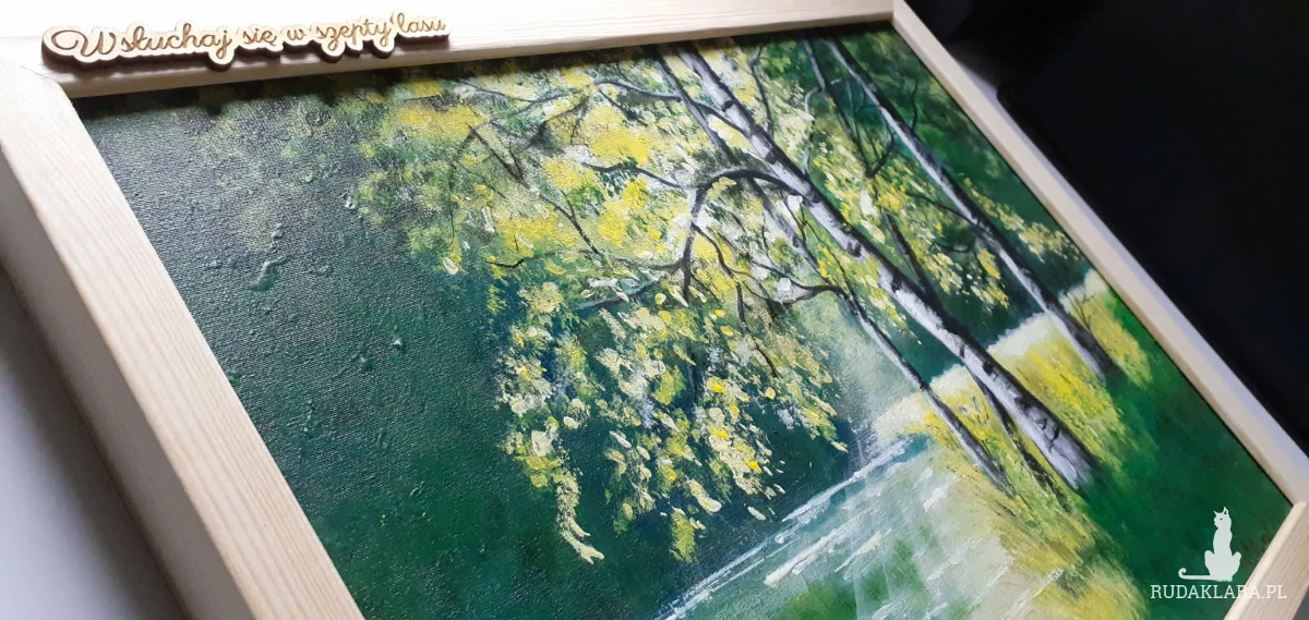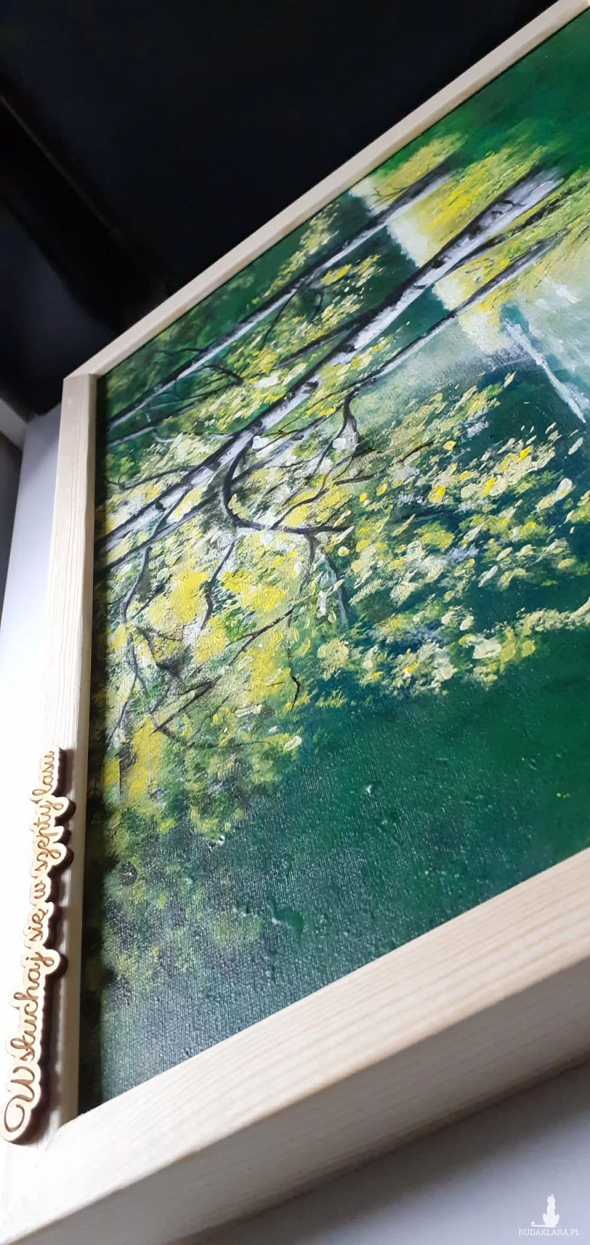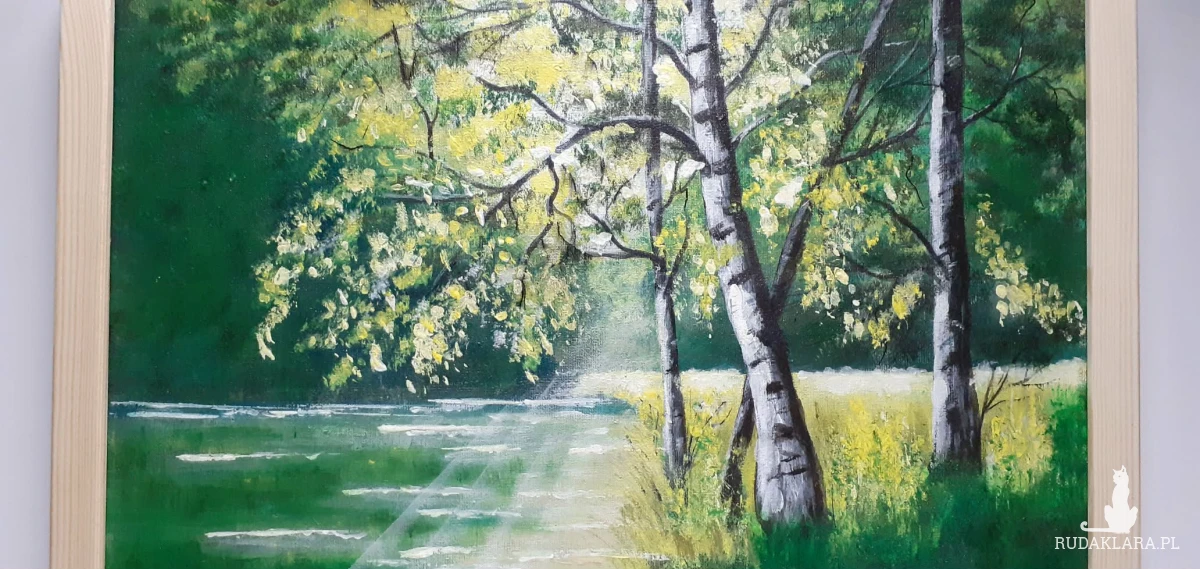Obraz duszą malowany, gotowy na prezent pejzaż w ramie. Wprowadzi do wnętrza naturę, spokój, świeżość, pozytywną energię.