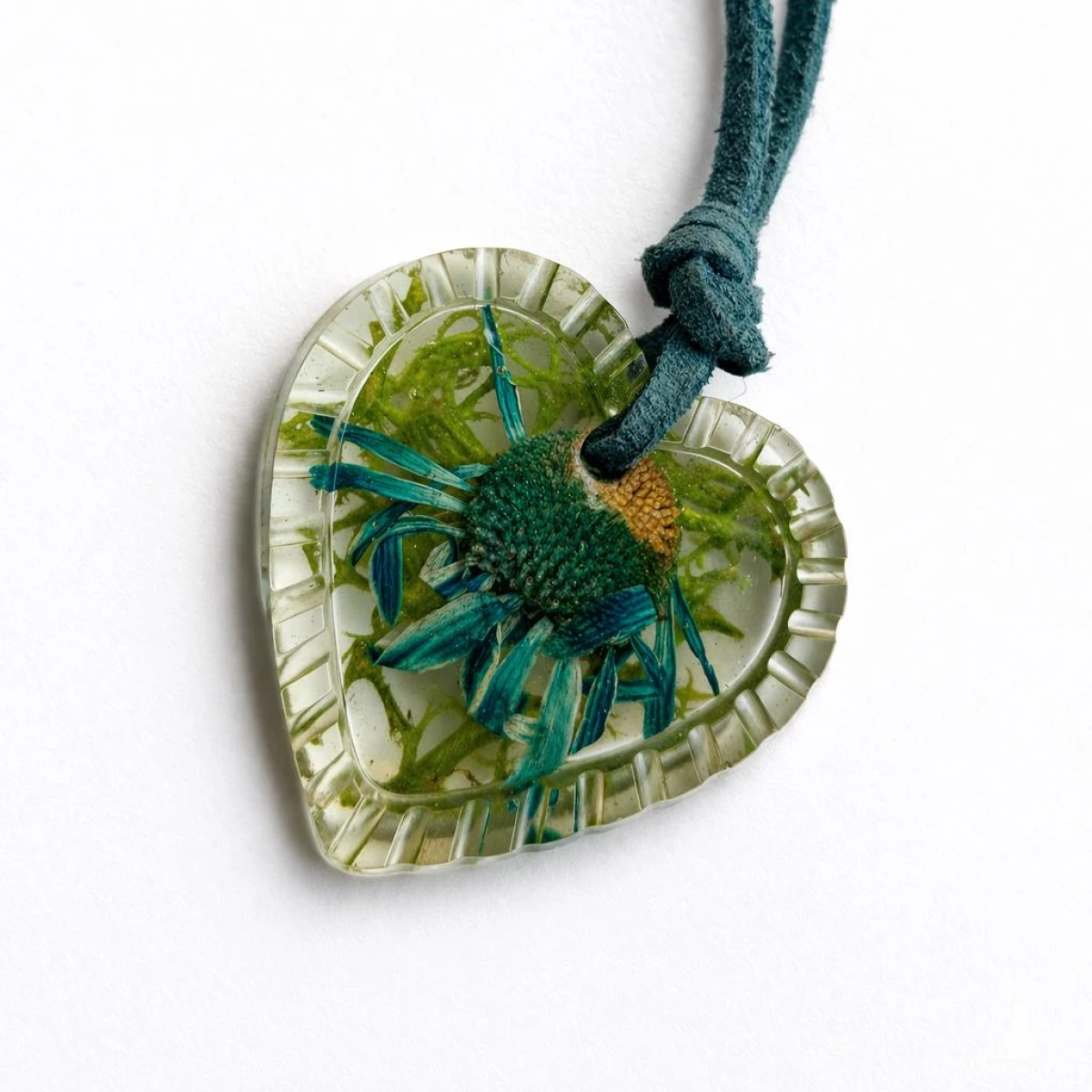 Transparentna żywica pięknie eksponuje rośliny, nadając biżuterii głębi i naturalnego charakteru.
