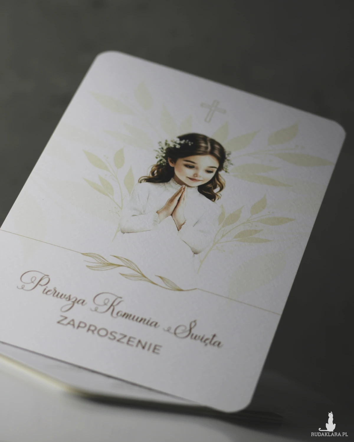 Format zaproszenia 12x17cm. Wydruk dwustronny na papierze ozdobnym o gramaturze 250g o delikatnej fakturze.