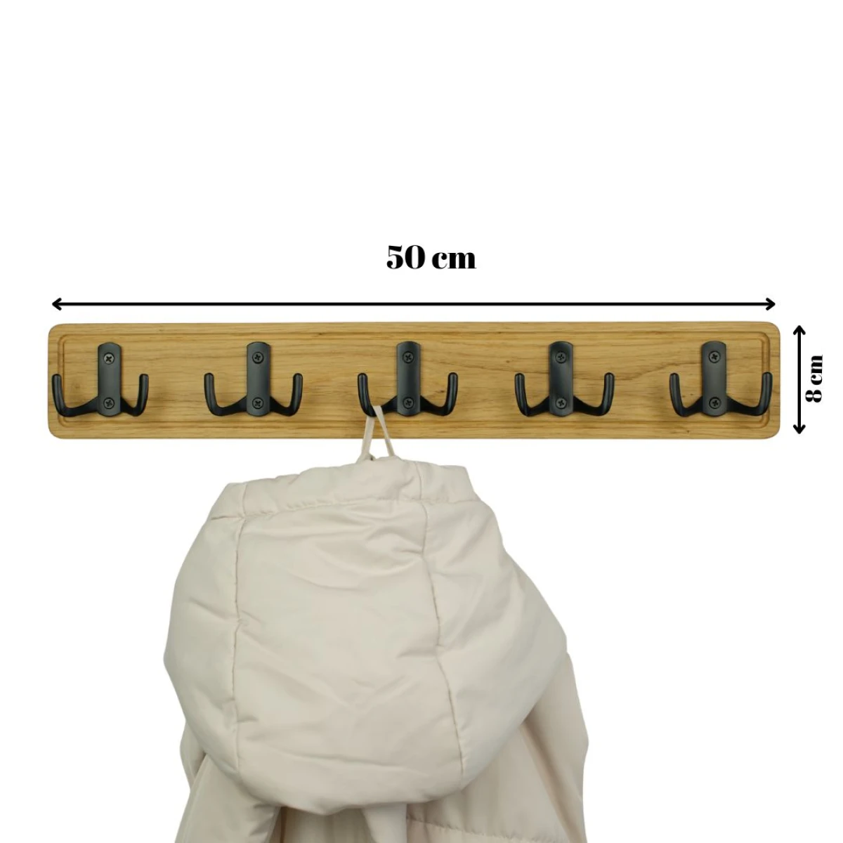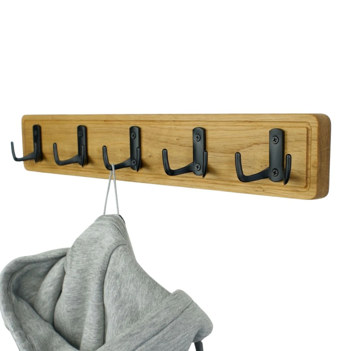Solidność: 5 podwójnych, czarnych haczyków (już zamontowanych!) pomieści wszystko – od ciężkich płaszczy w przedpokoju, po ręczniki w łazience czy akcesoria w kuchni.