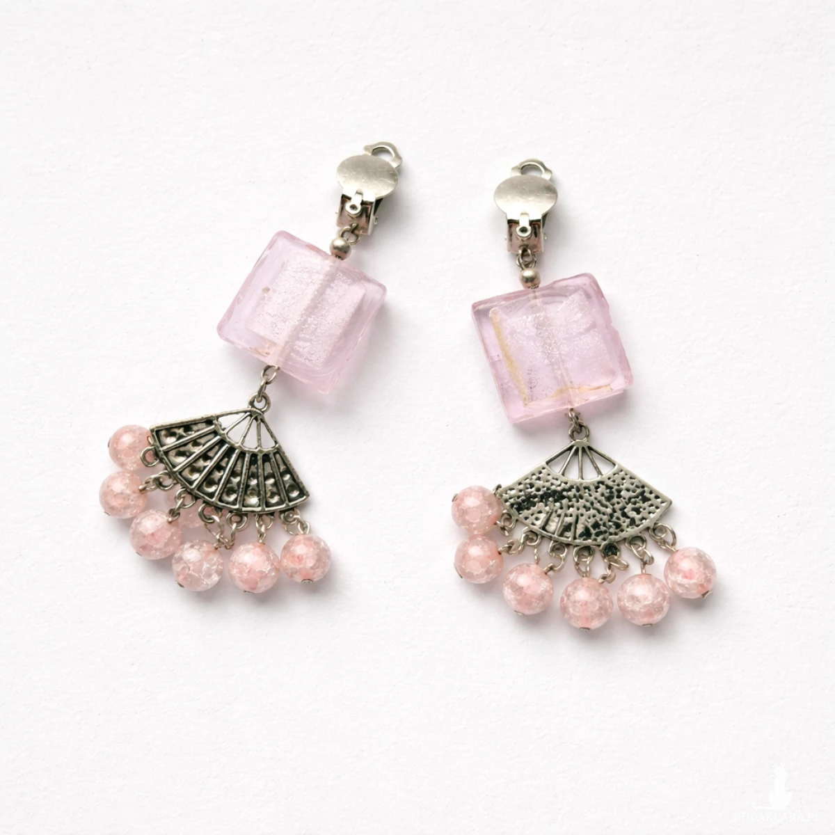 Klipsy pastelowe w kolorze różowym,szkiełka i koraliki,polecam box z1