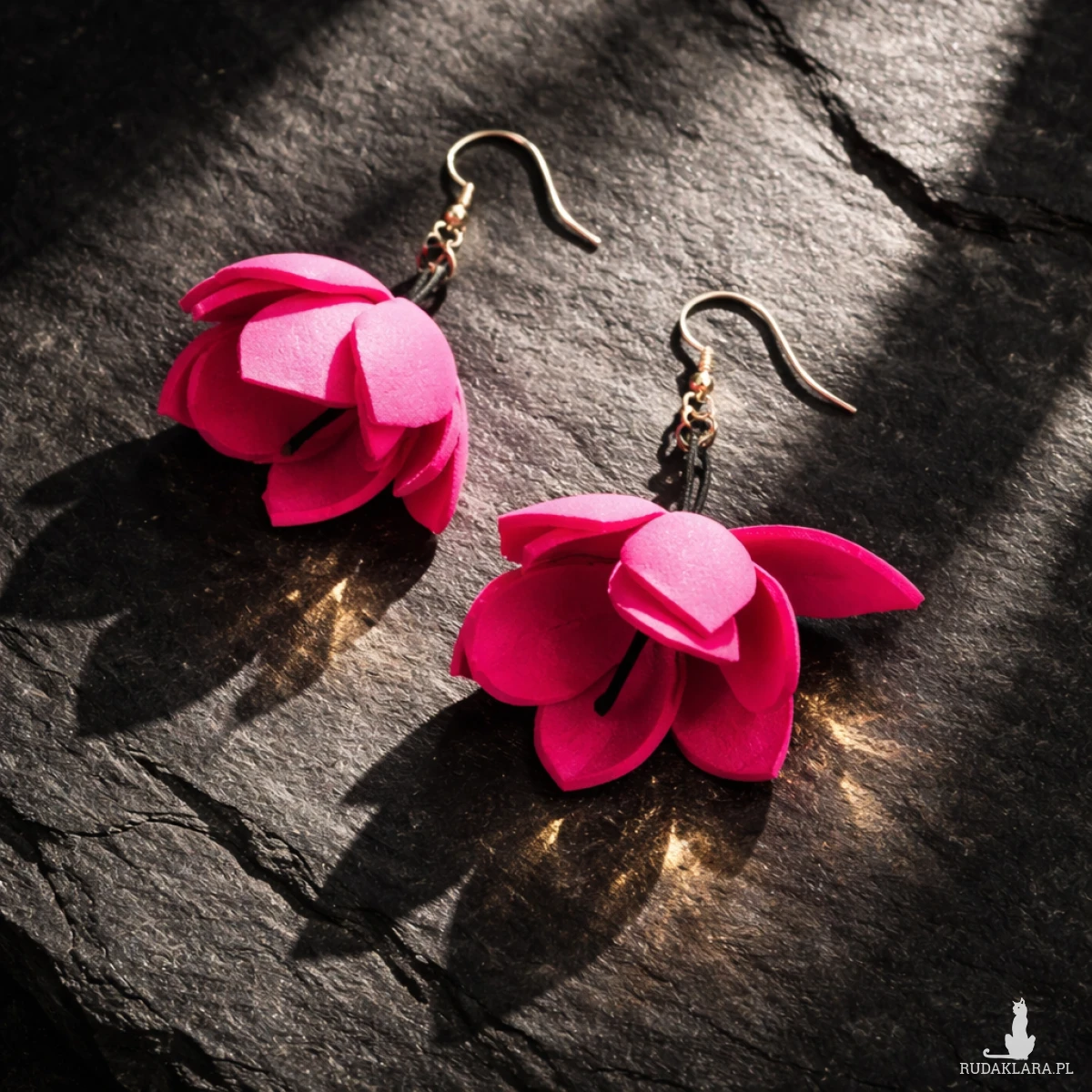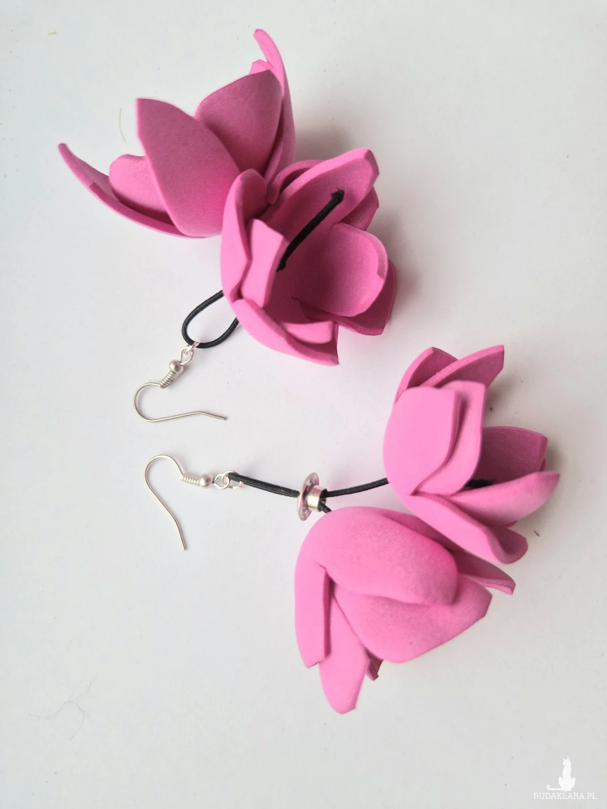 Kolczyki wyjątkowo leciutkie amarantowe kwiaty robione ręcznie