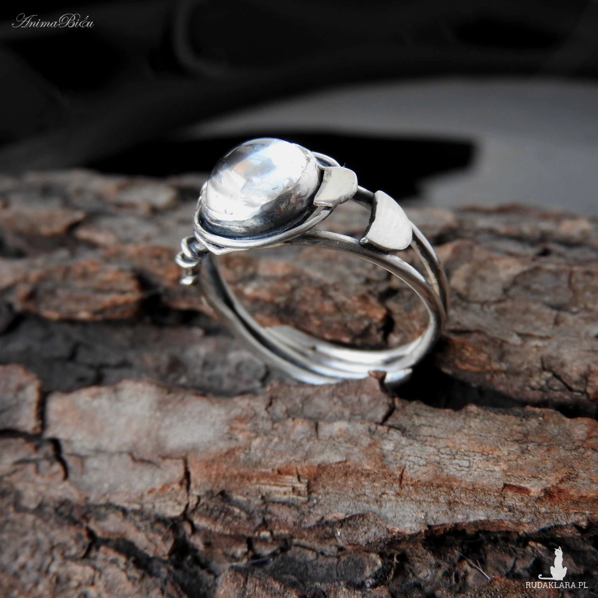 Pierścionek srebrny z kryształem górskim. Pierścionek