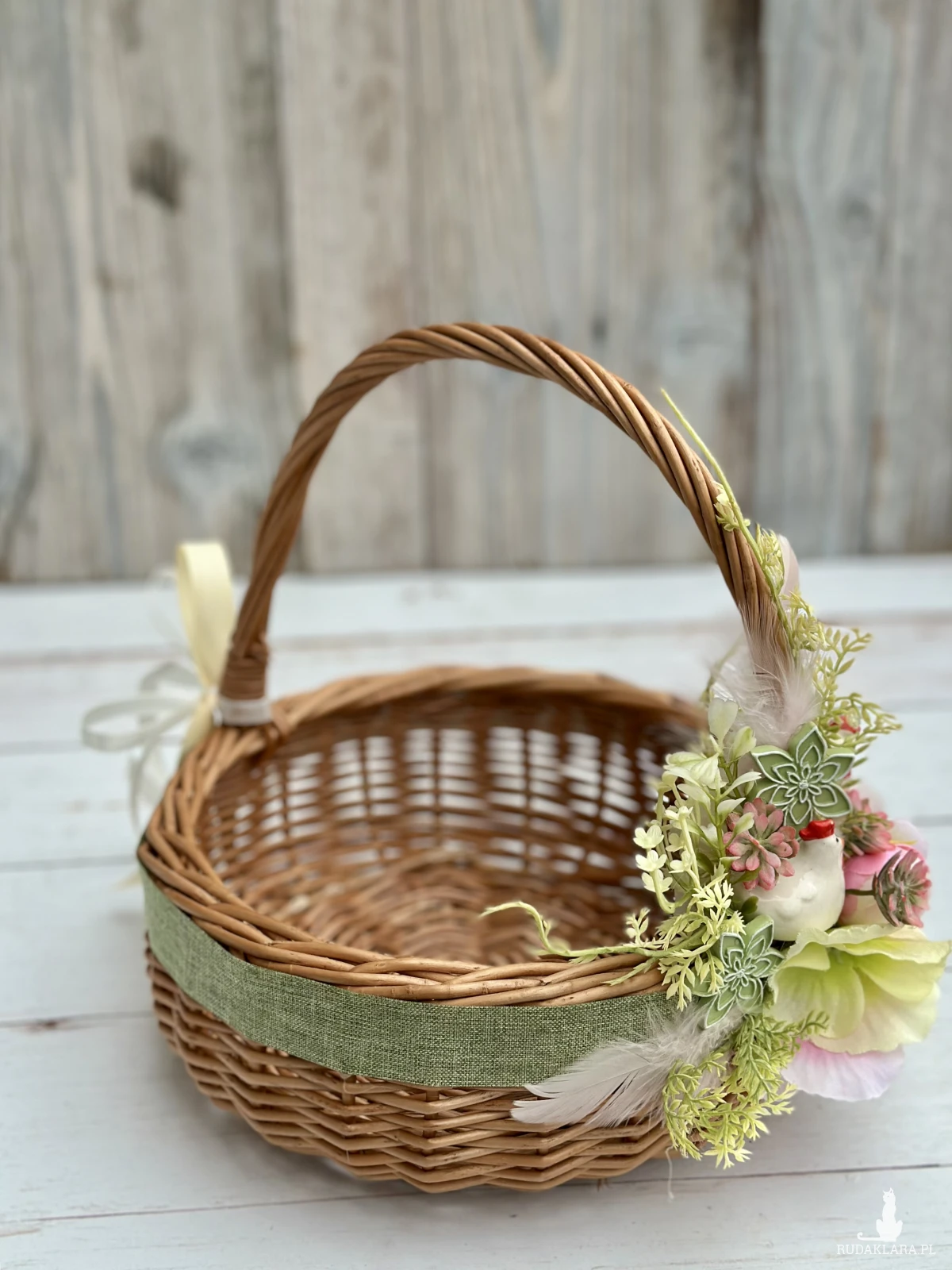 Koszyczek wielkanocny z dekoracją, koszyk wiklinowy