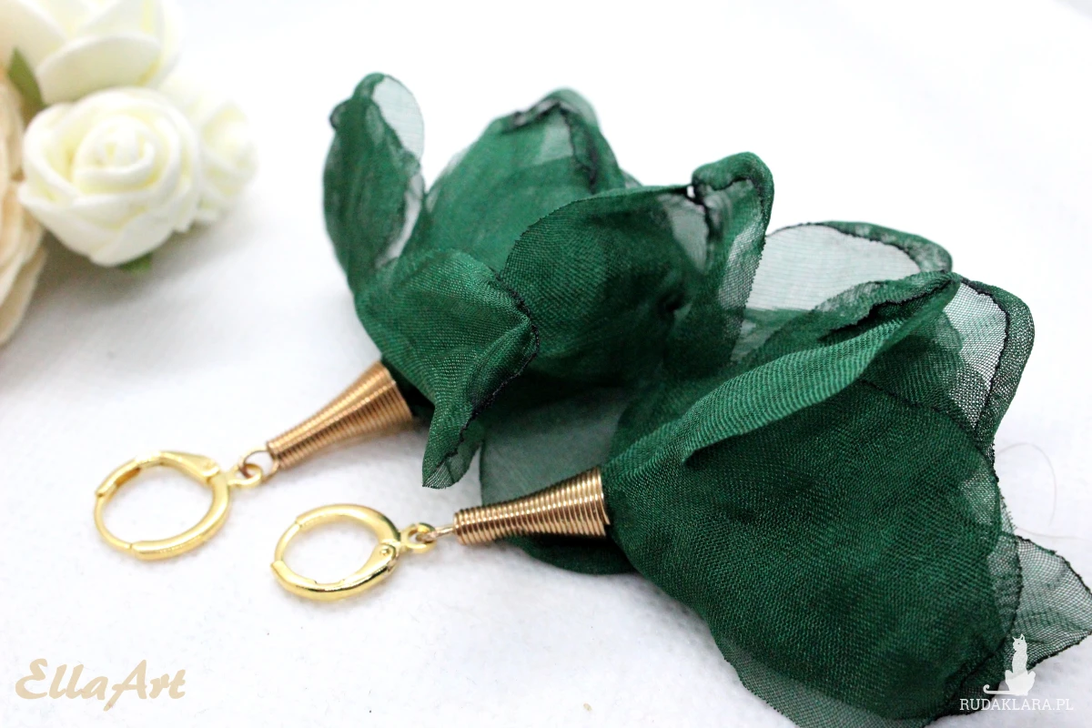 długie kolczyki - szyfonowe kwiatki - zielone