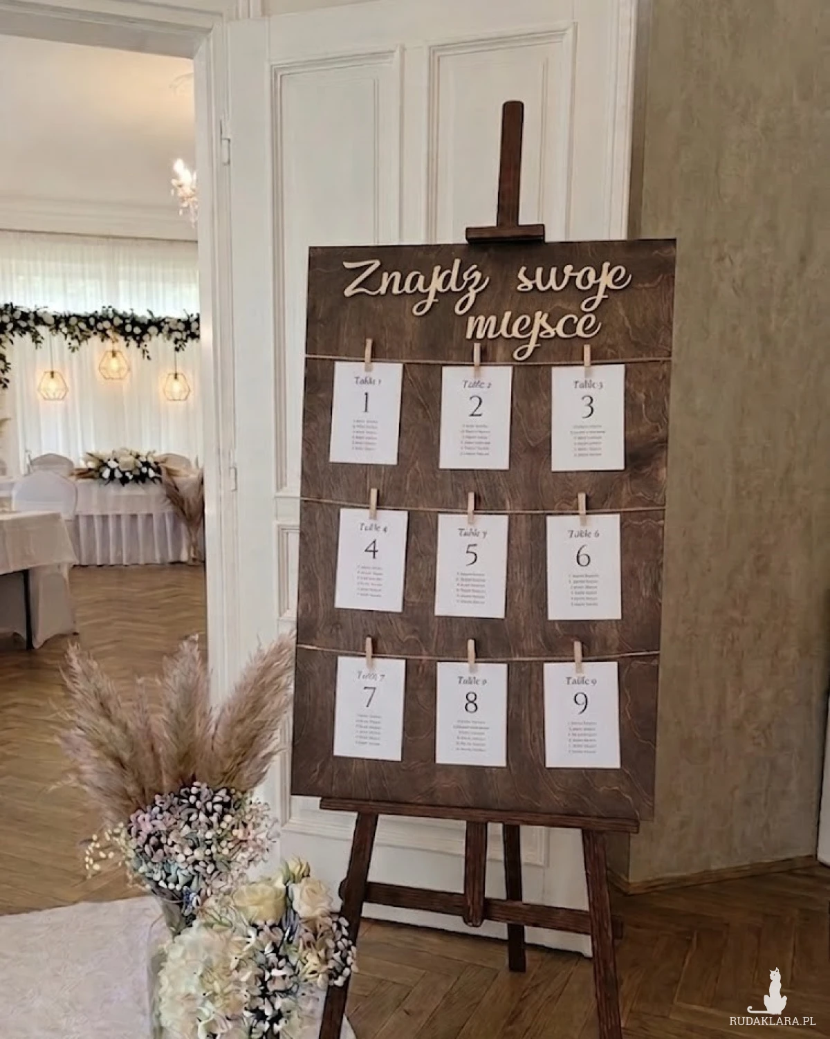 Tablica idealnie sprawdzi się jako plan usadzenia gości przy wejściu na salę weselną, pomagając w organizacji i wprowadzając estetyczny akcent już od pierwszego kontaktu z aranżacją. Możliwość personalizacji (np. imion, nazw stołów czy czcionki) pozwala dopasować produkt do indywidualnej wizji przyjęcia.