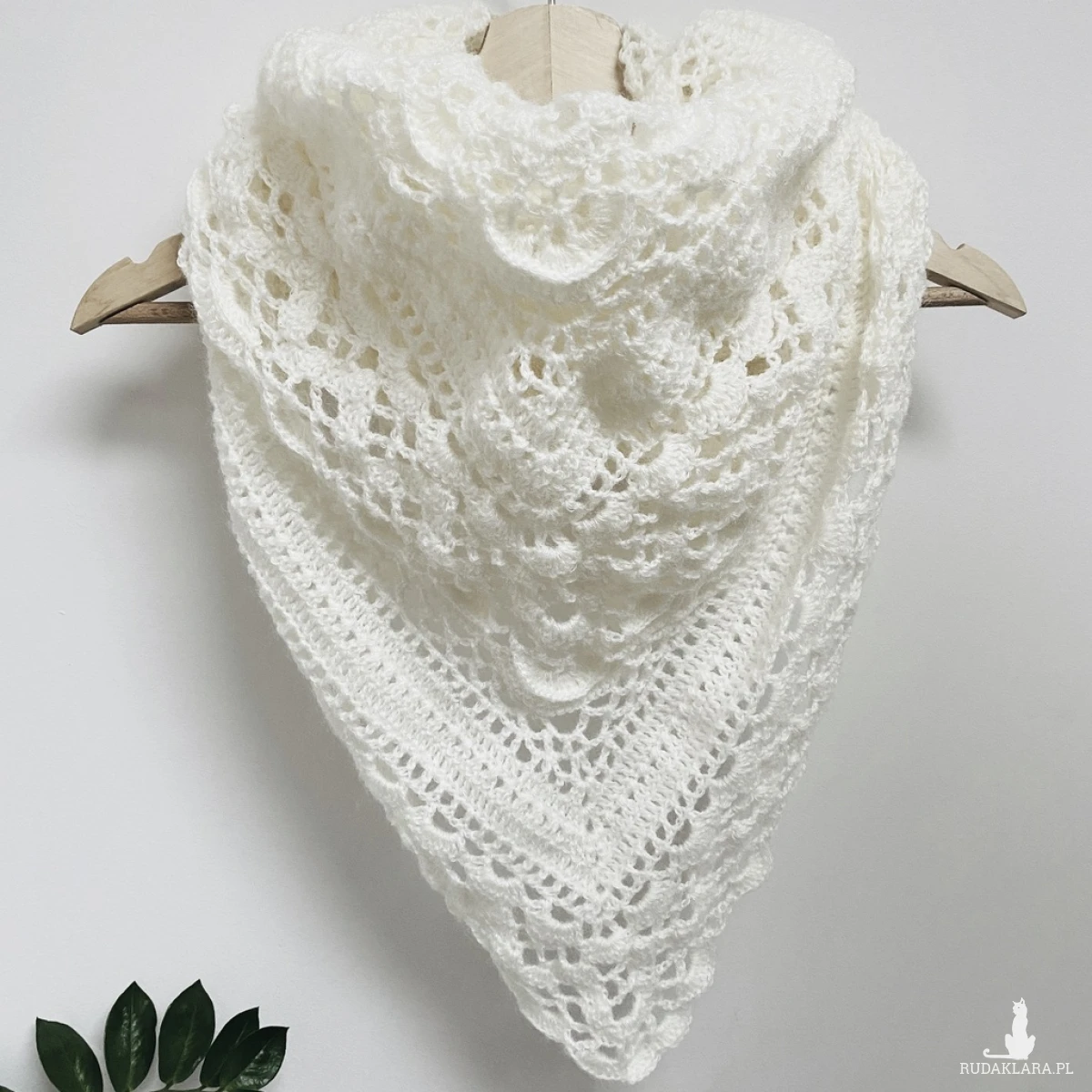 Ozdobna biała chusta ślubna Klaziena ręcznie robiona z merino