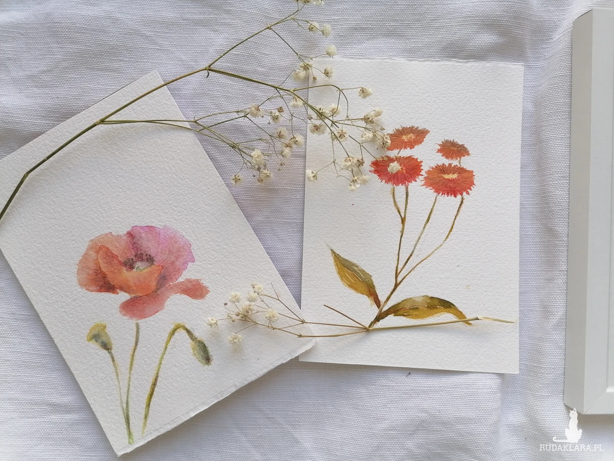 Akwarela ta przywodzi mi na myśl gorący, letni wieczór, kiedy barwy wokół są już spokojniejsze, lekko przytłumione ale wciąż ciepłe i intensywne. Jest to obraz oryginalny, nie reprodukcja. Namalowałam go akwarelami na polskim papierze bawełnianym o jakości archiwalnej, a szczegóły dopracowałam kredkami artystycznymi. Zastosowane przeze mnie materiały charakteryzują się wysoką odpornością na światło.