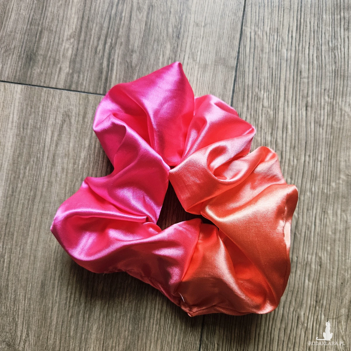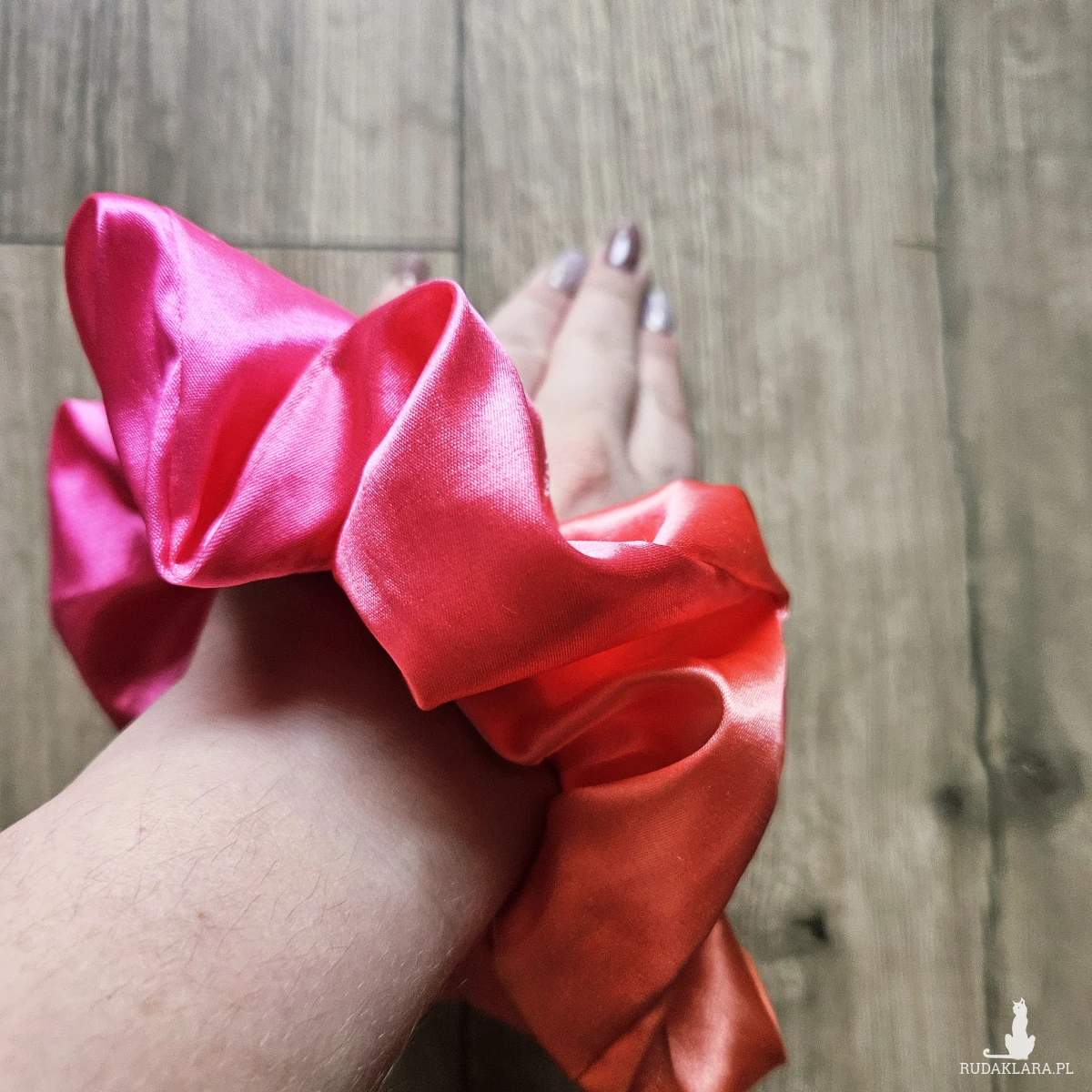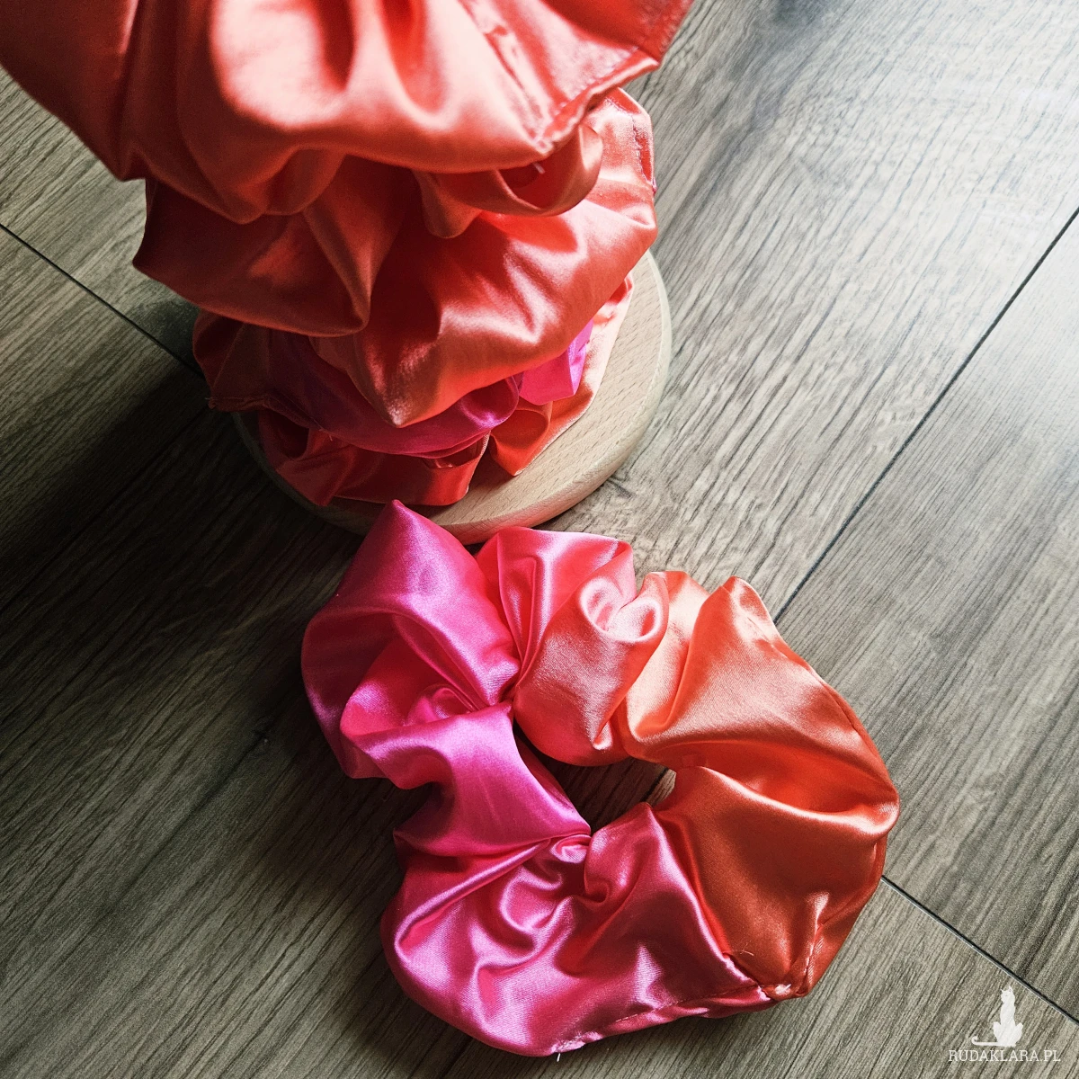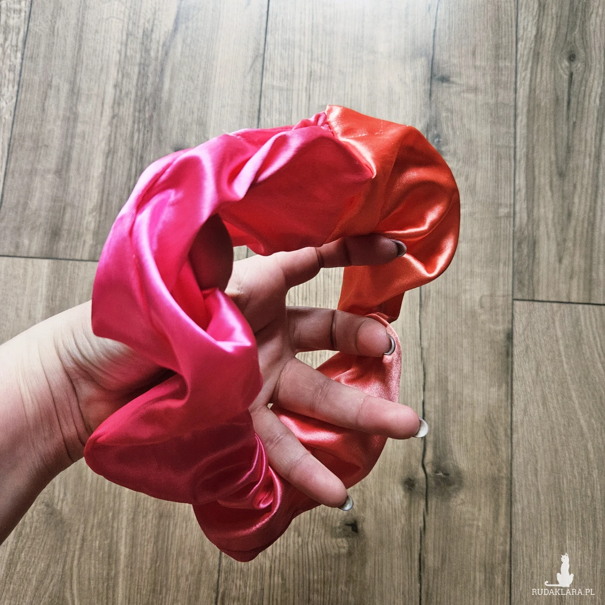 Gumka satynowa z miękkiej satyny delikatna pastelowa ombre neon pomarańczowa róż