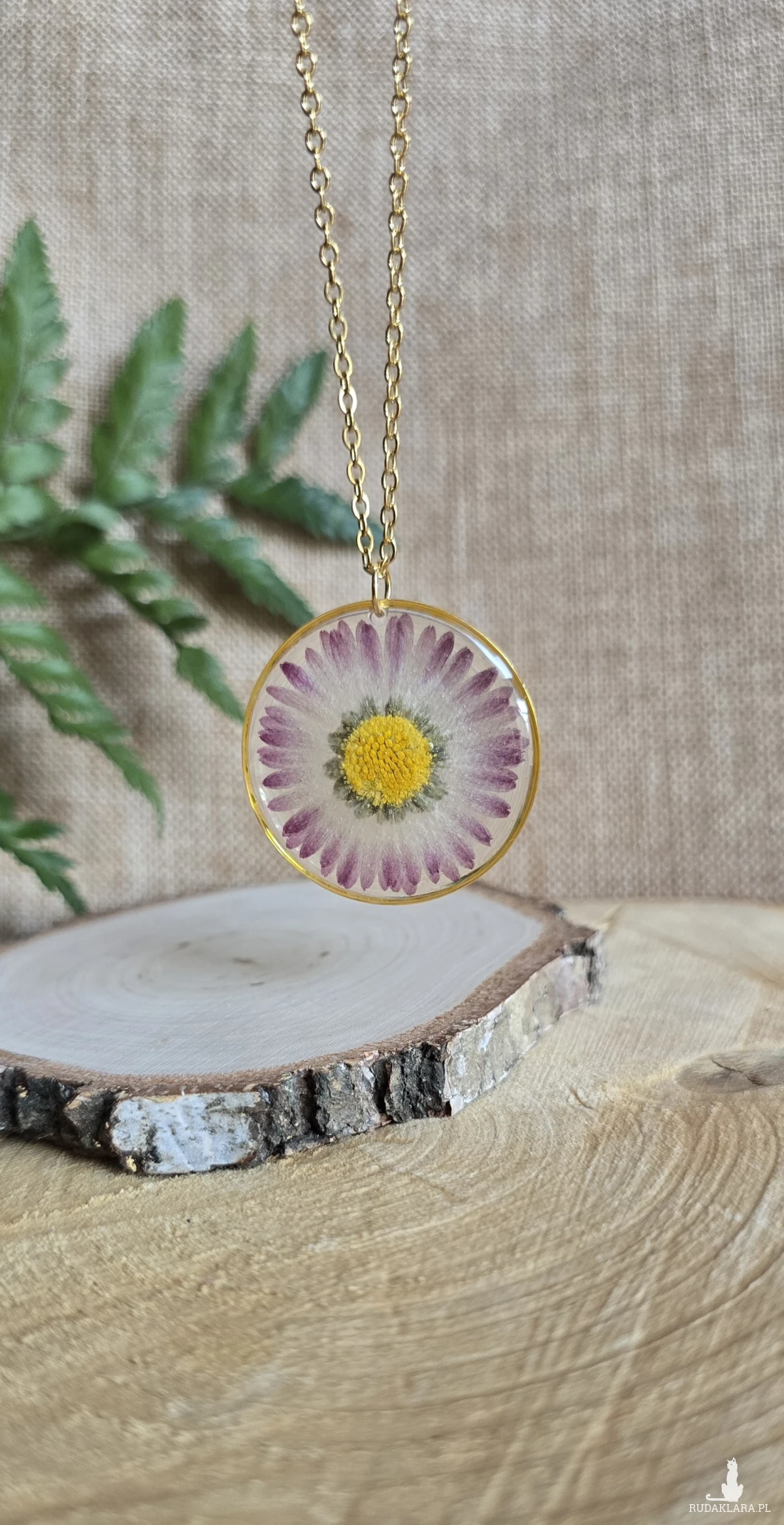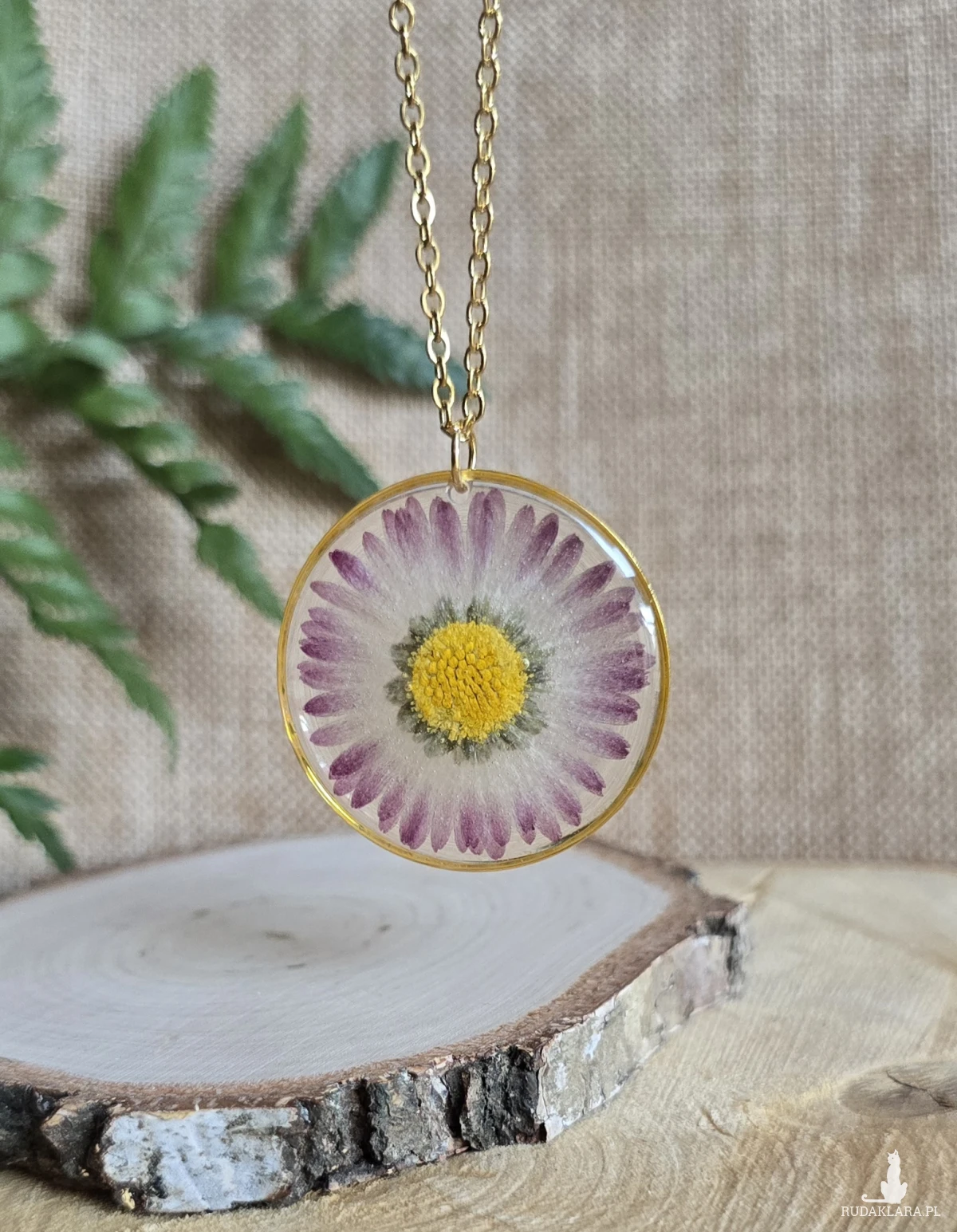 Oferuję Państwu unikalną biżuterię. Zawieszka jest wykonana z suszonych kwiatów i żywicy epoksydowej. Biżuteria jest wspaniałym i oryginalnym prezentem na lata.