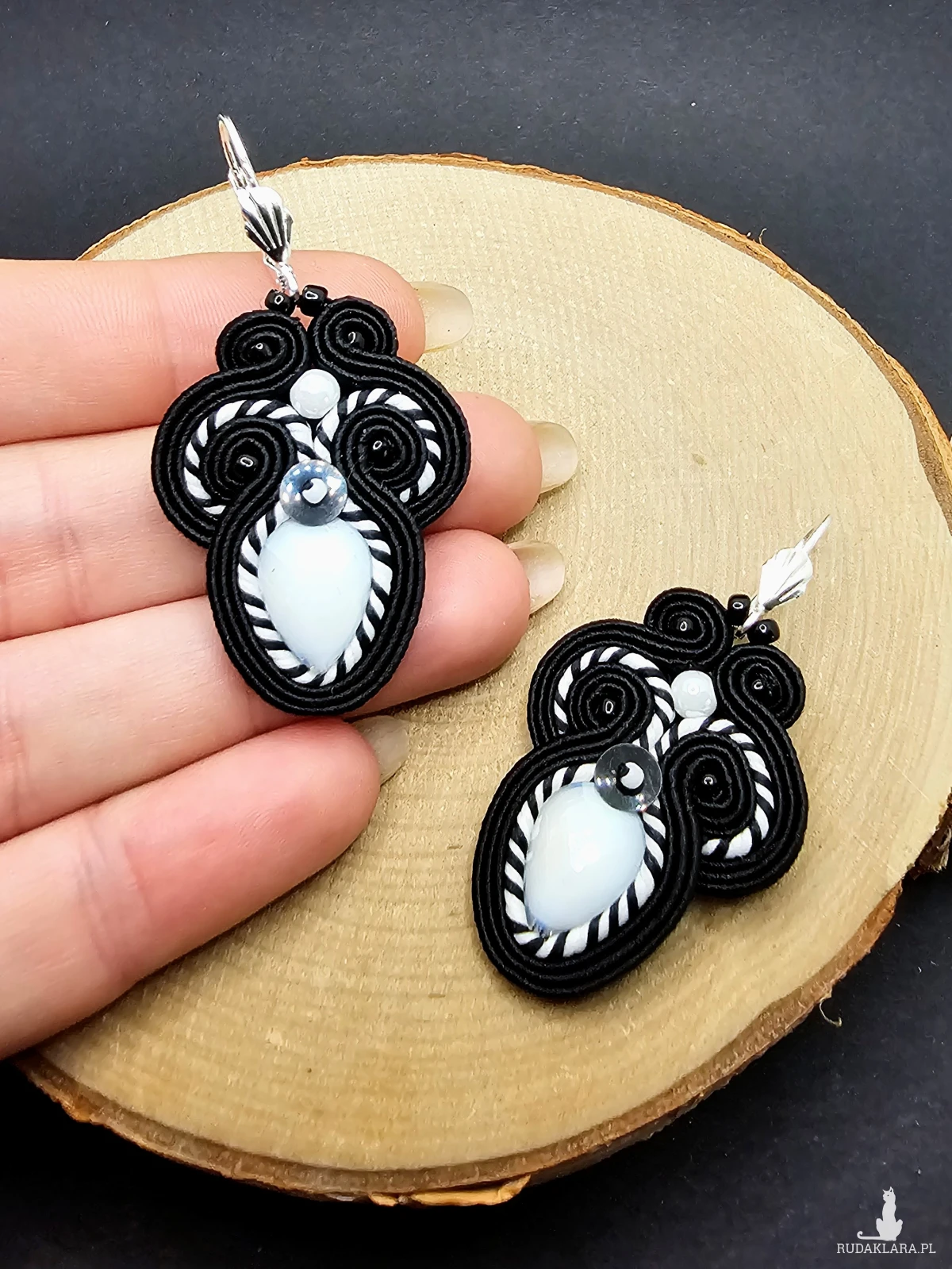 Czarno-białe kolczyki sutasz