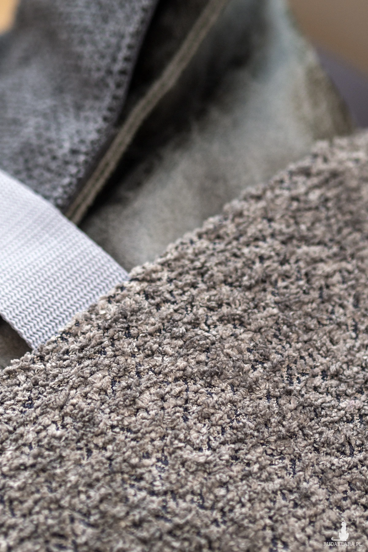 Regulowane paski. W środku czarna, bawełniana podszewka oraz mała kieszonka na suwak.