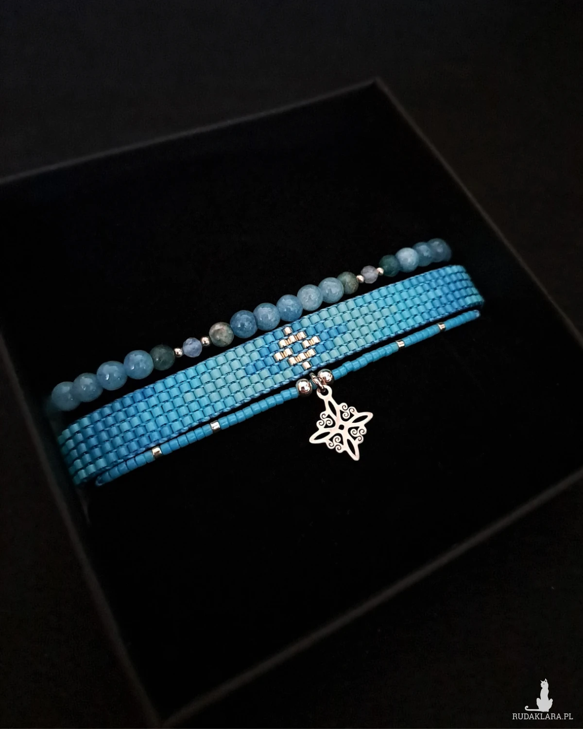 Zestaw niebieskich bransoletek „Winter Sky” - Akwamaryn i Apatyt