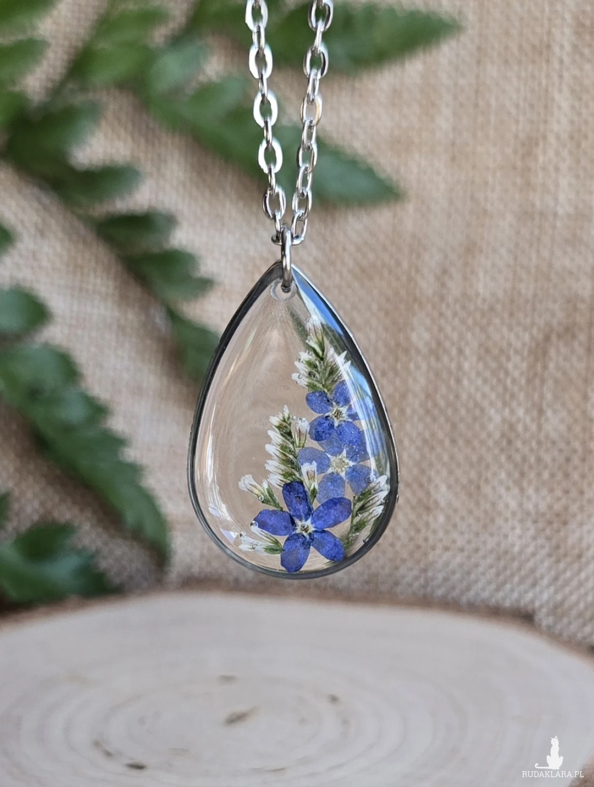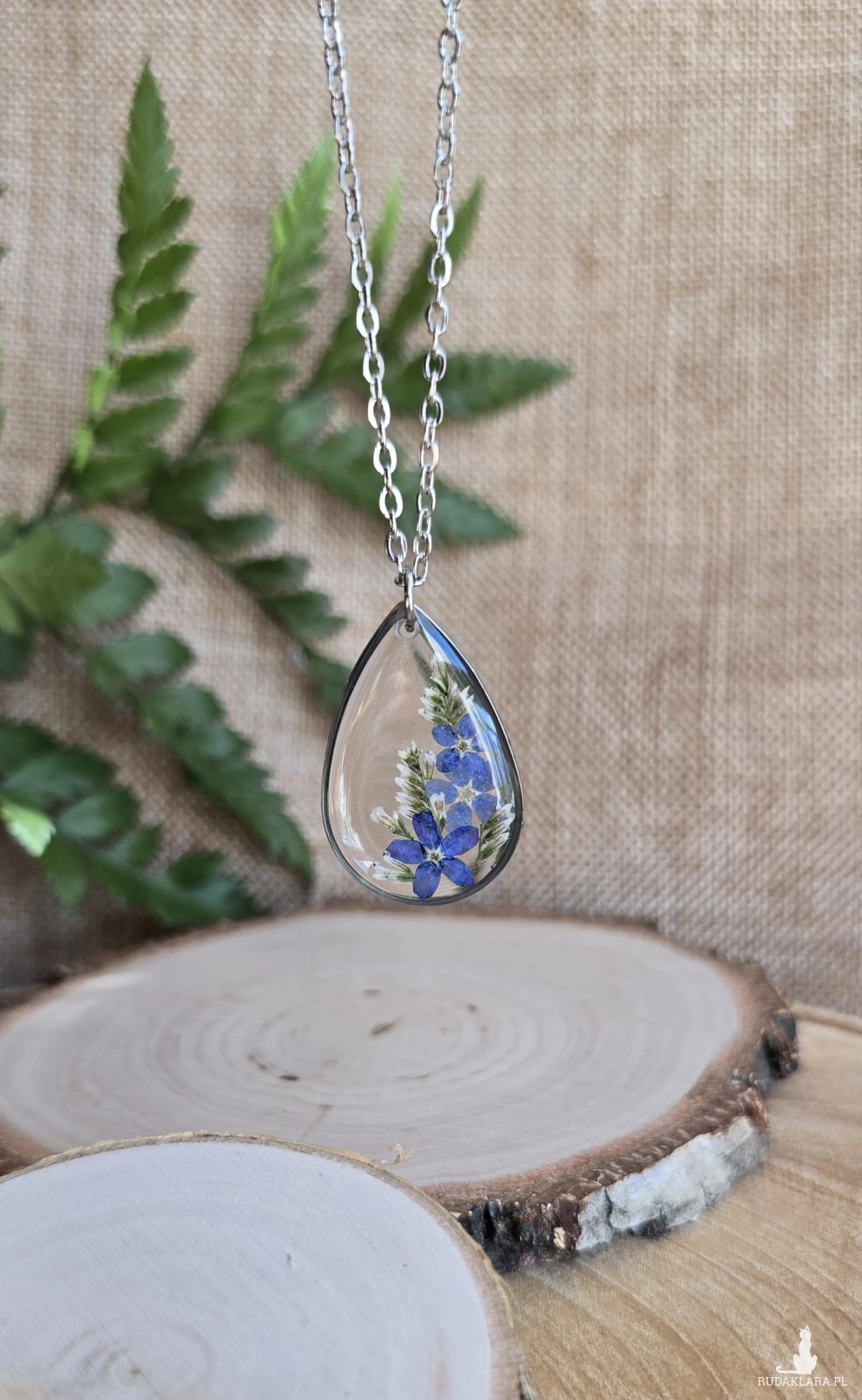 Oferuję Państwu unikalną biżuterię. Zawieszka jest wykonana z suszonych kwiatów i żywicy epoksydowej. Biżuteria jest wspaniałym i oryginalnym prezentem na lata.