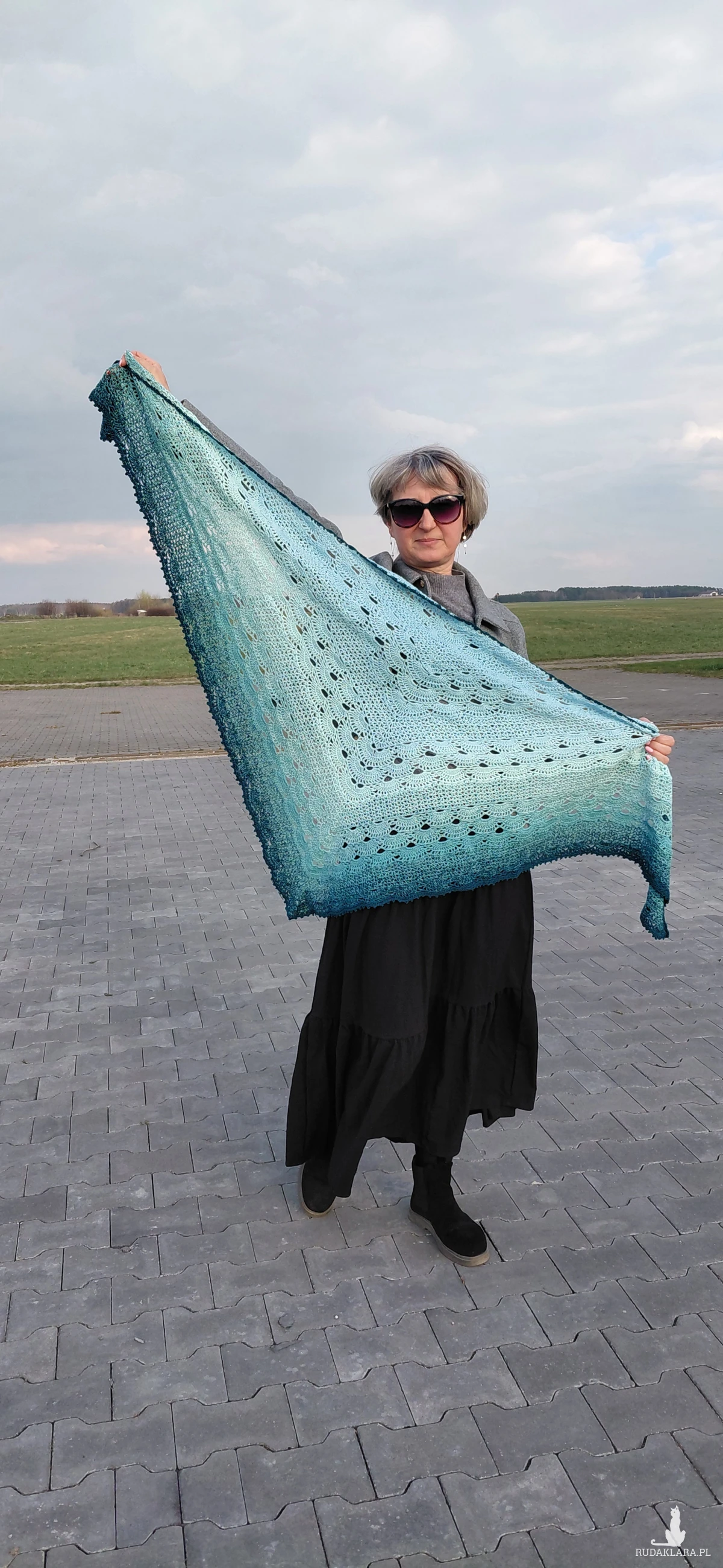 Chusta z włóczki kokonek. Wykonana szydełkiem niepowtarzalnym wzorem.