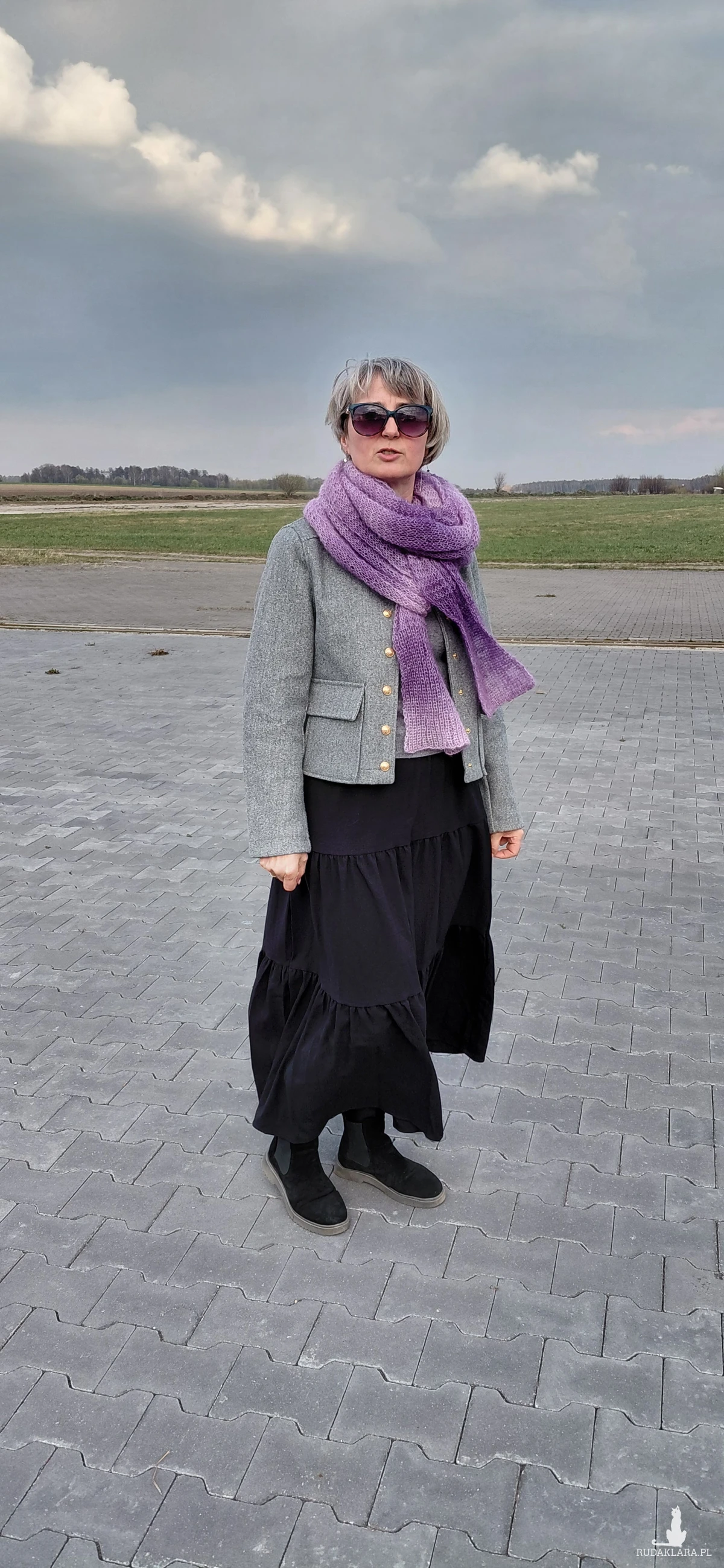 Szal wykonany na drutach. Długi- ok 180-200 cm. Wełna 65%, moher 25%, bawełna 10%. Przeznaczony na wiosnę i jesień. Pranie w pralce- program Wełna w woreczku na bieliznę.