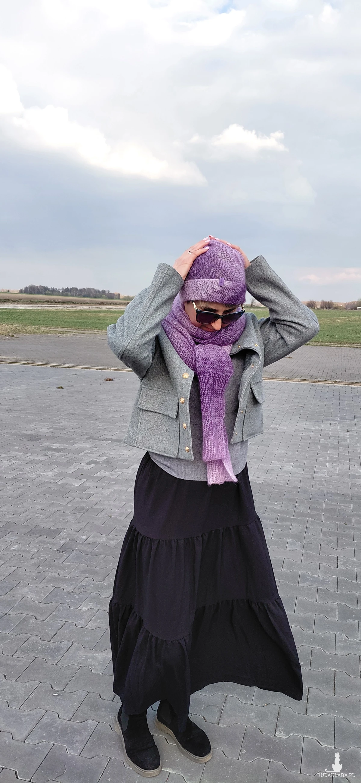 Czapka wykonana na drutach wzorem fantazyjnym na skos. 65% wełna, 25% moher, 10% bawełna. Uwaga tu do sprzedaży czapka. Ostatnie zdjęcie prezentuje czapkę z szalem, który jest sprzedawany oddzielnie.