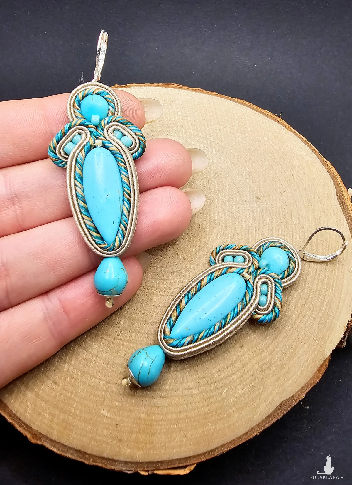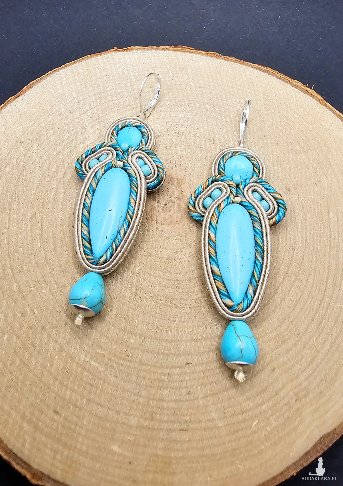 beżowo-turkusowe kolczyki sutasz z howlitem