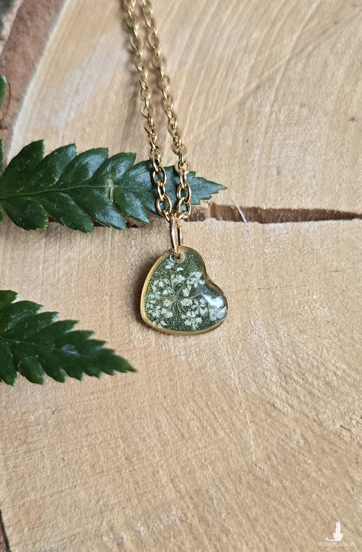 Zawieszka kwiatem wisiorek złoty serce zielony
