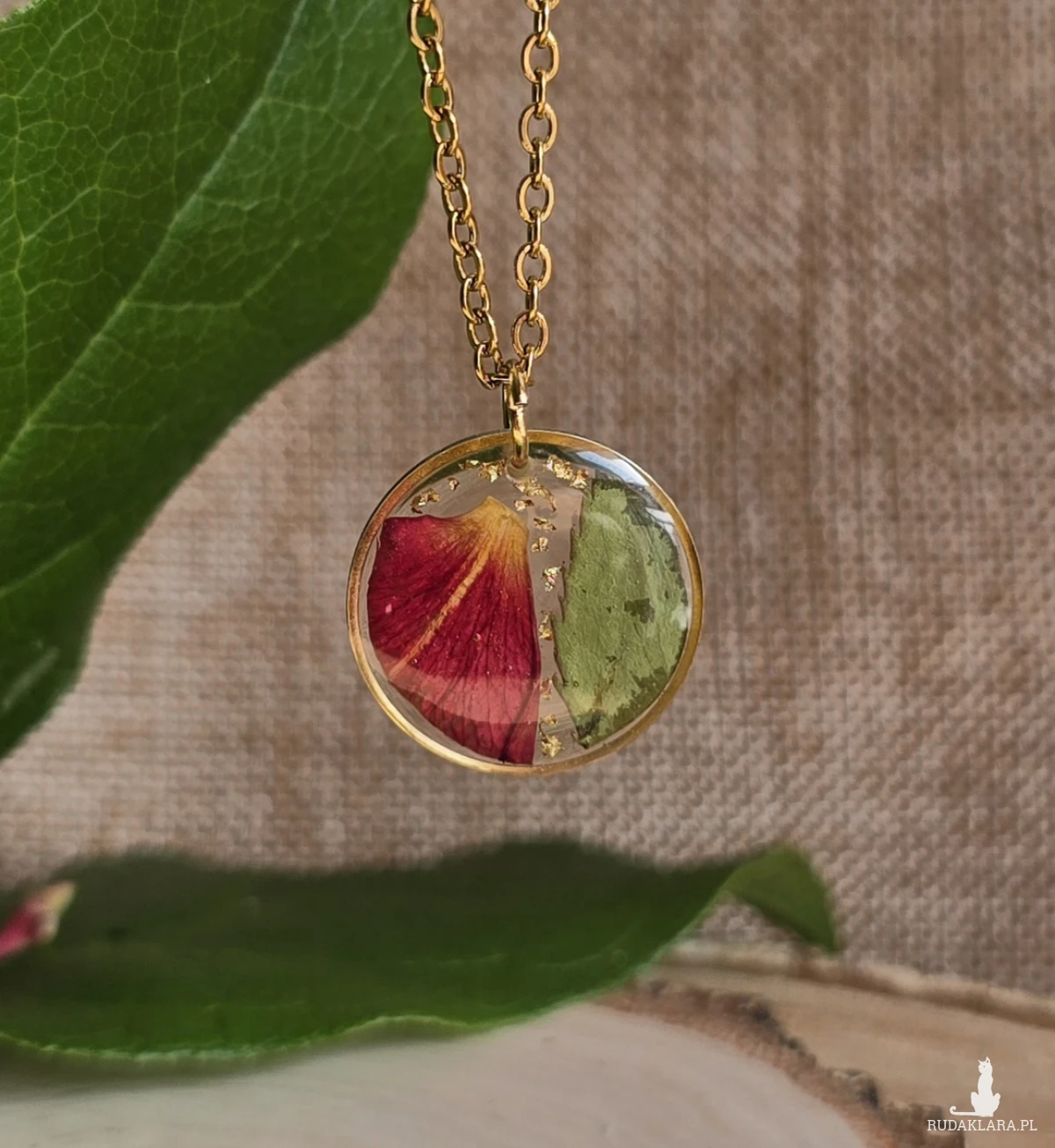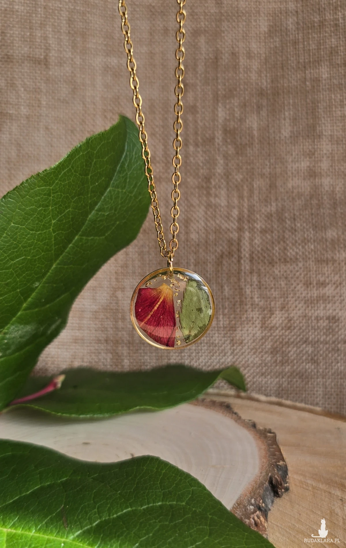 .Oferuję Państwu unikalną biżuterię. Zawieszka jest wykonana z suszonych kwiatów i żywicy epoksydowej. Biżuteria jest wspaniałym i oryginalnym prezentem na lata.