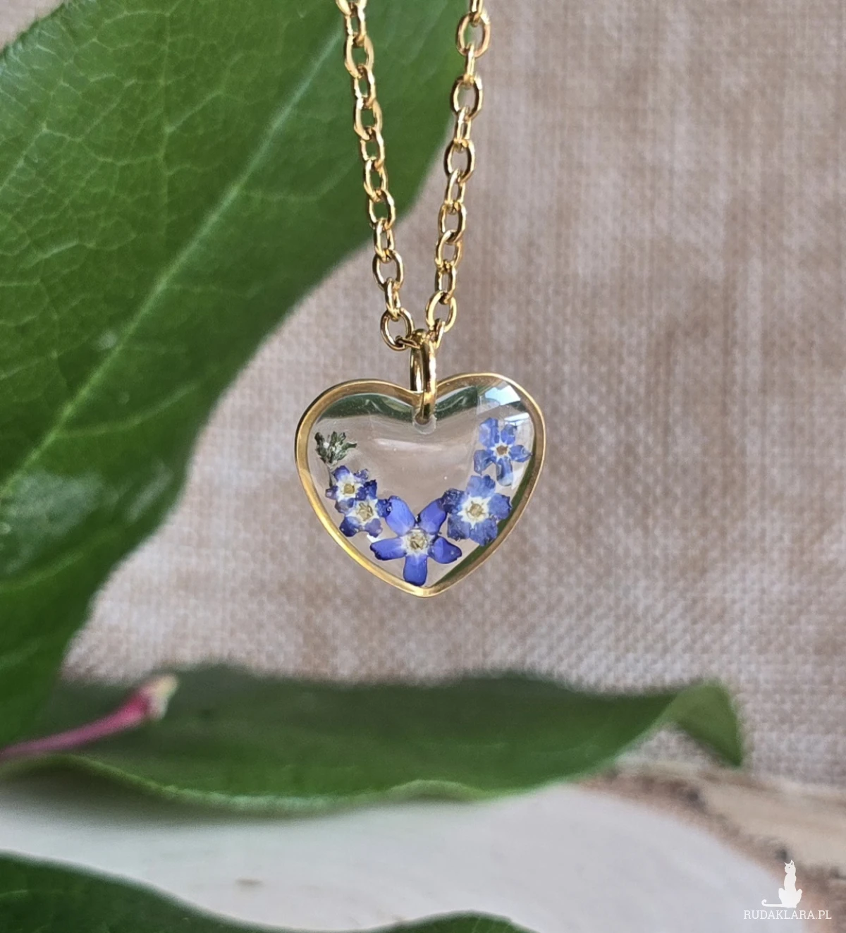 Oferuję Państwu unikalną biżuterię. Zawieszka jest wykonana z suszonych kwiatów i żywicy epoksydowej. Biżuteria jest wspaniałym i oryginalnym prezentem na lata.