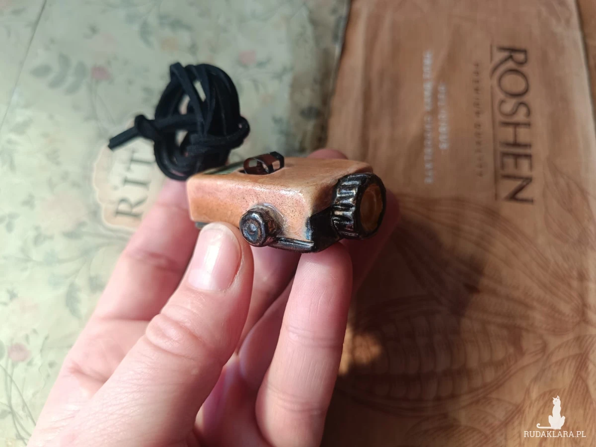 Wisior ceramiczny z motywem projektora do slajdów w starym stylu. Ręcznie wykonany z ceramiki z elementem kliszy o wymiarach 4,5 x 3,5 x 1,7 cm Polecam serdecznie.