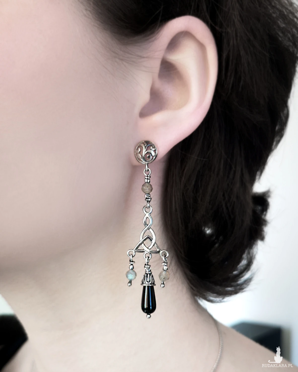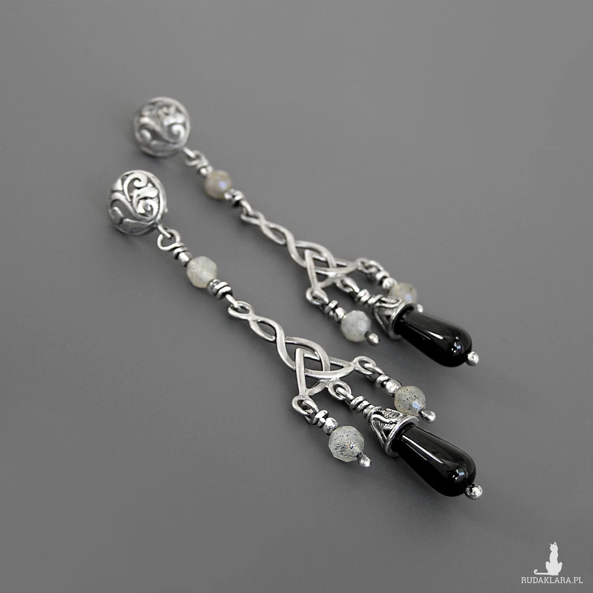 Kolczyki Scarlett, krople onyksu i labradoryt, srebro, kolekcja Przeminęło z Wiatrem