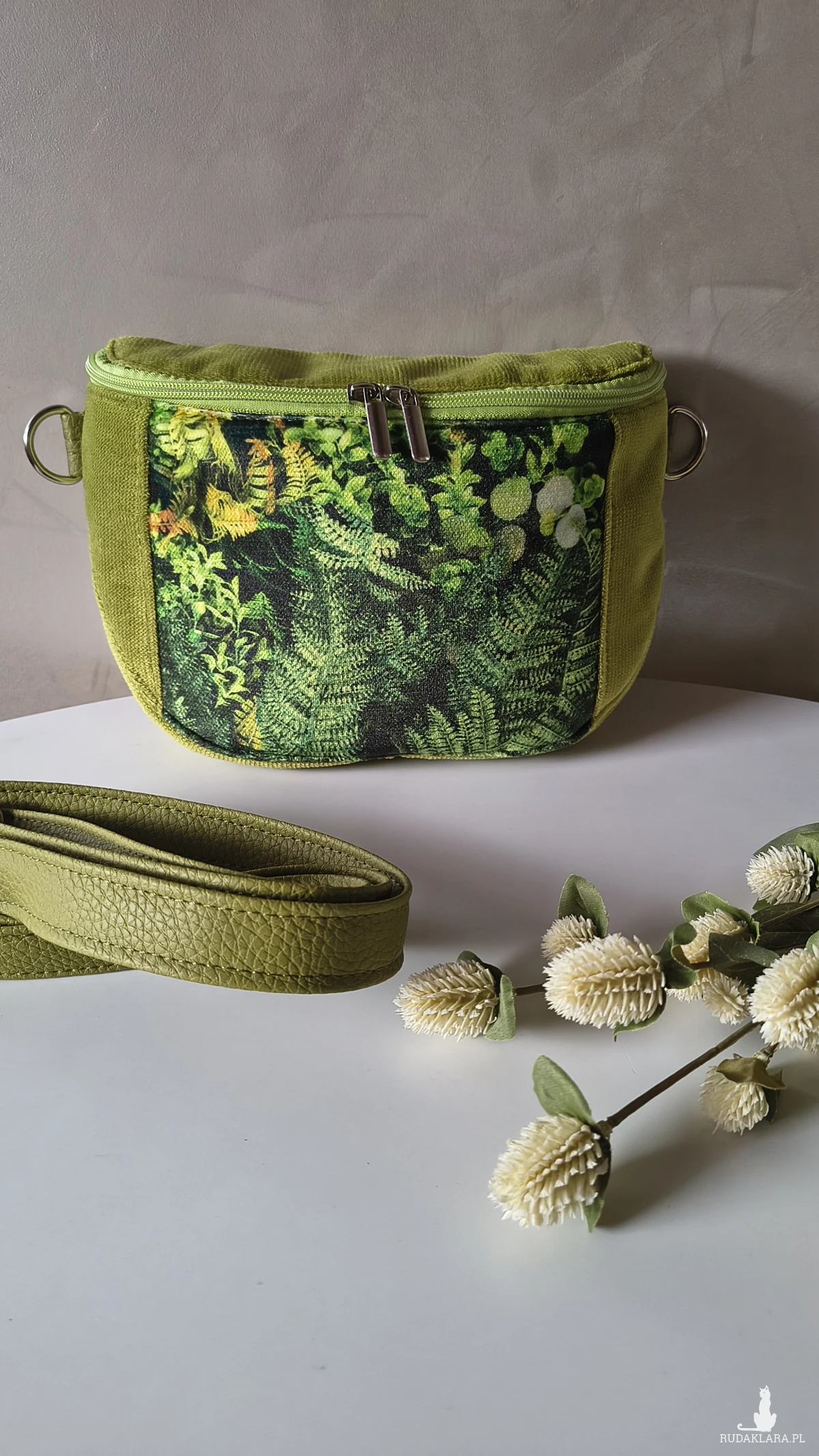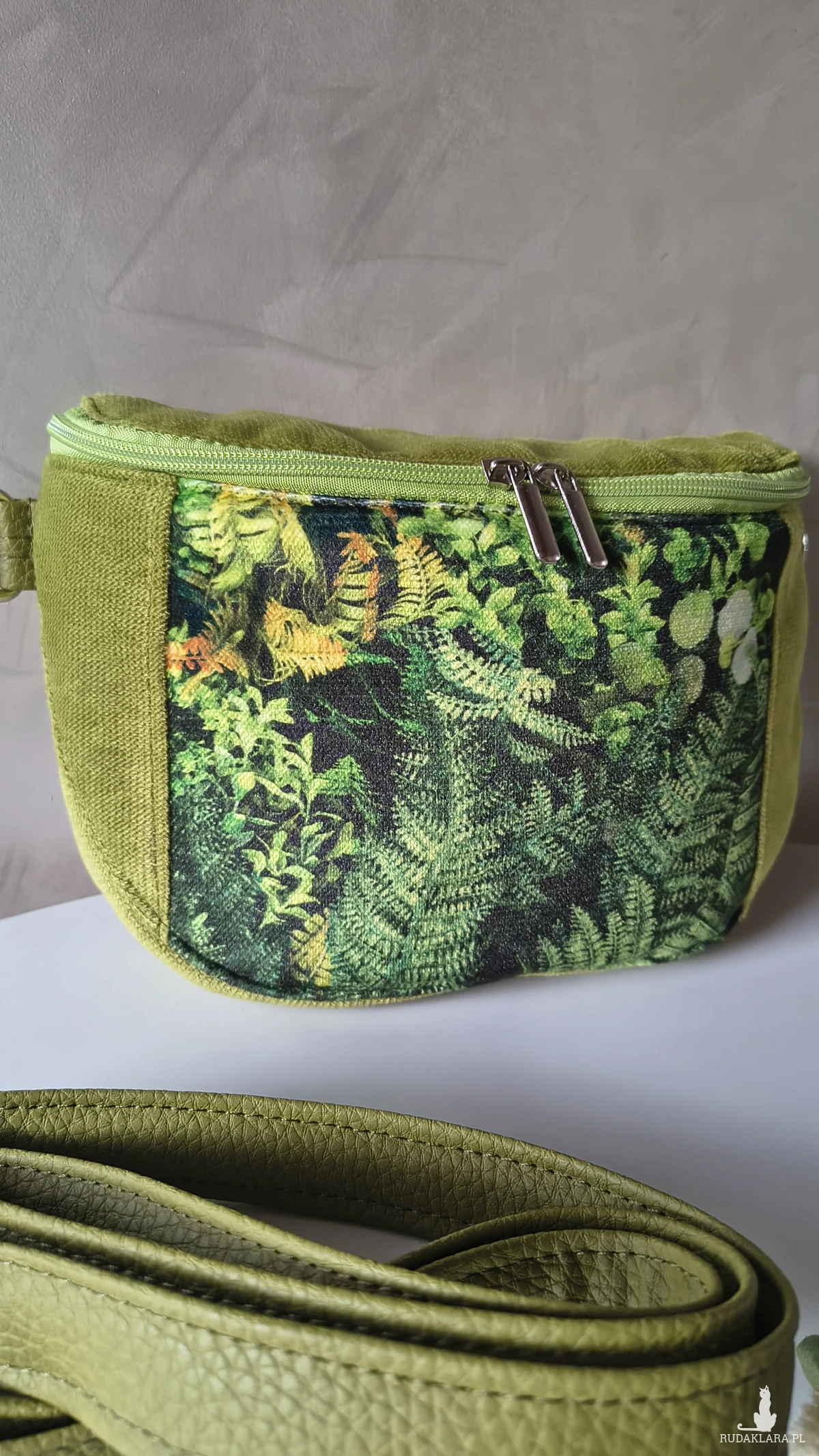 Ta torebka to mały kawałek natury, który możesz mieć zawsze przy sobie. Rożne odcienie zieleni i roślinny motyw wprowadzają spokój – jak spacer po lesie w środku dnia. Ta torebka to nie tylko dodatek, ale nastrój, który zabierasz ze sobą: