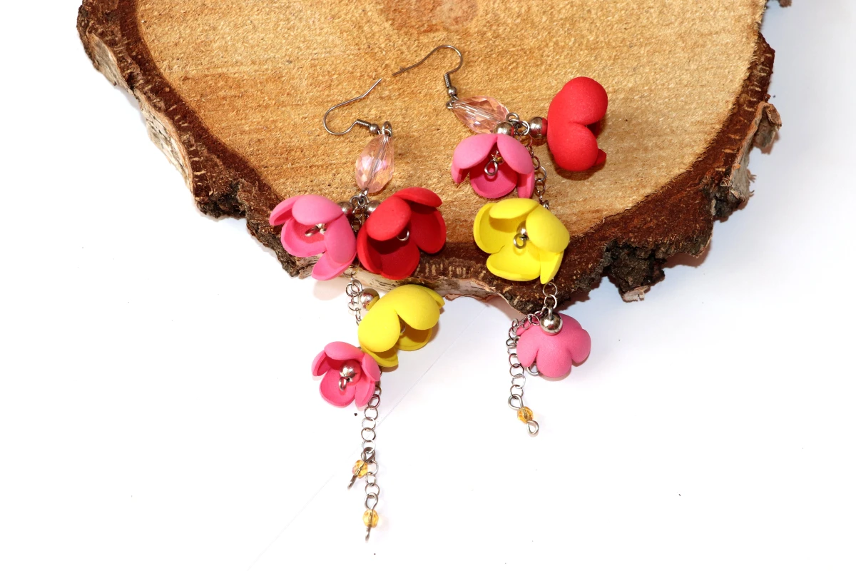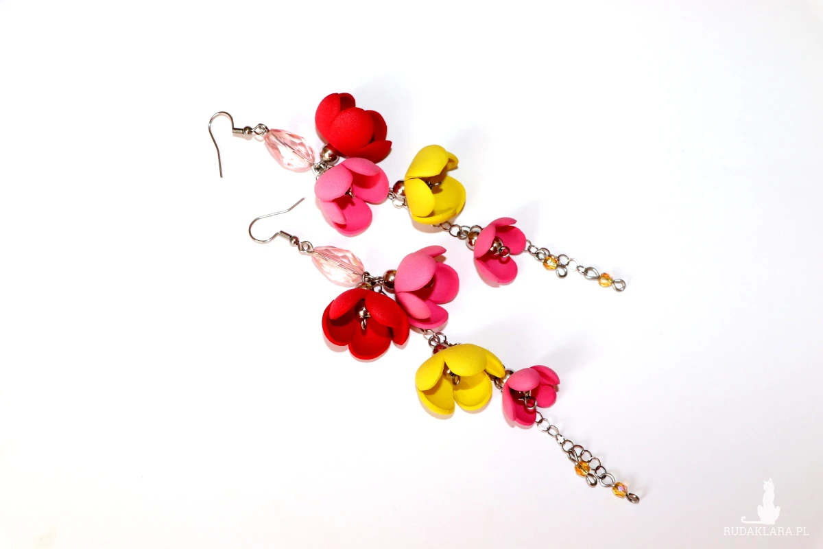 Te efektowne, długie kolczyki kwiatowe to idealna propozycja dla kobiet, które szukają wyrazistej biżuterii, nieobciążającej uszu. Zostały wykonane ręcznie z pianki (foamiranu) – niezwykłego materiału, który jest niezwykle lekki, trwały i odporny na wilgoć. Każdy płatek został uformowany tak, by przypominał naturalne kwiaty.