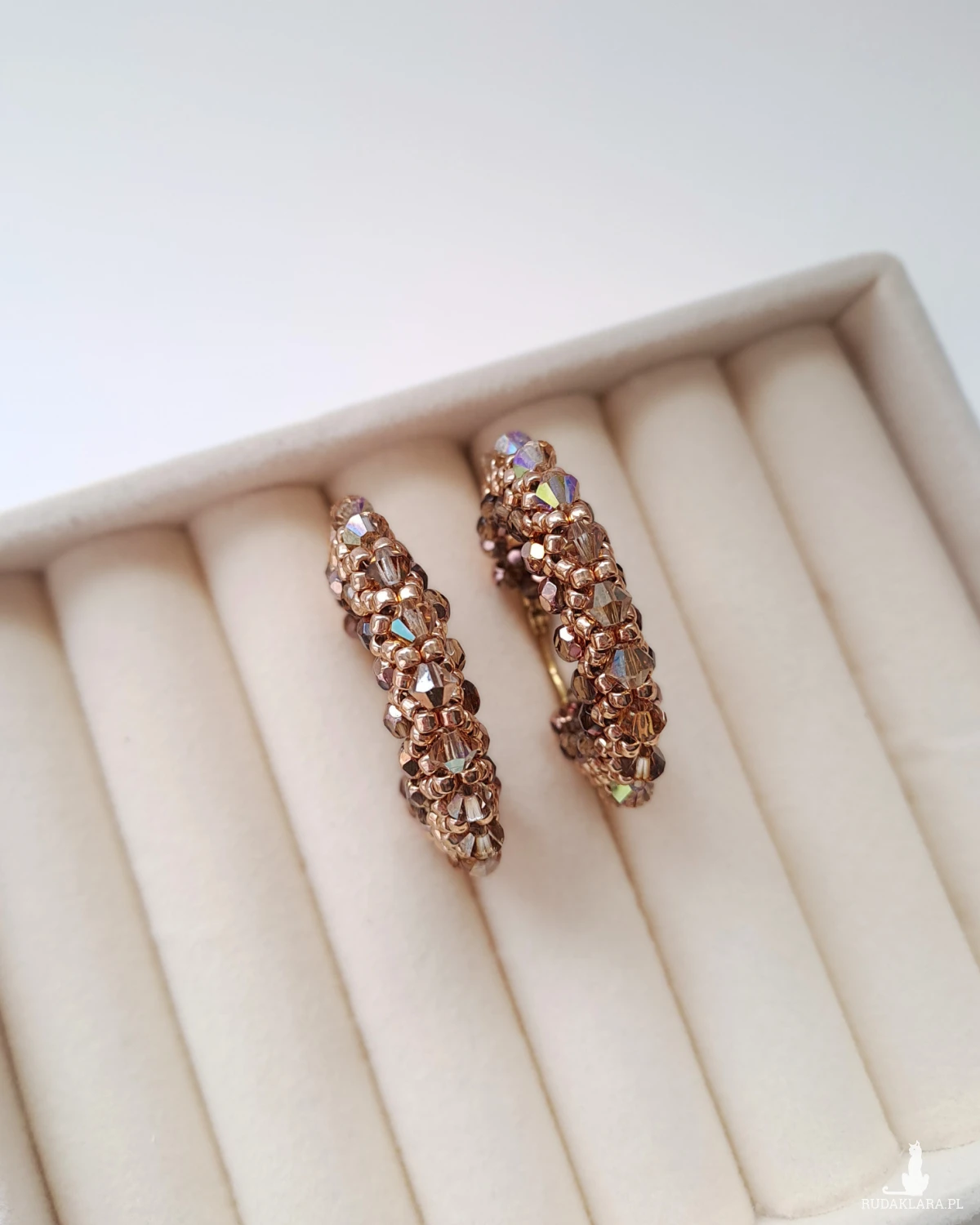 Całość została wzbogacona kryształami Preciosa 4 mm w kolorze Light Colorado Topaz AB, które pięknie odbijają światło, nadając biżuterii subtelnego, wielowymiarowego blasku.