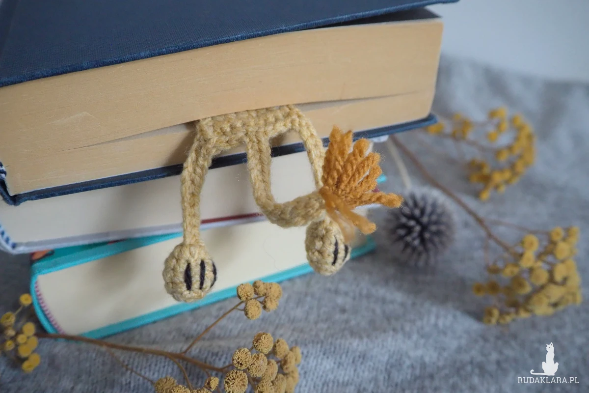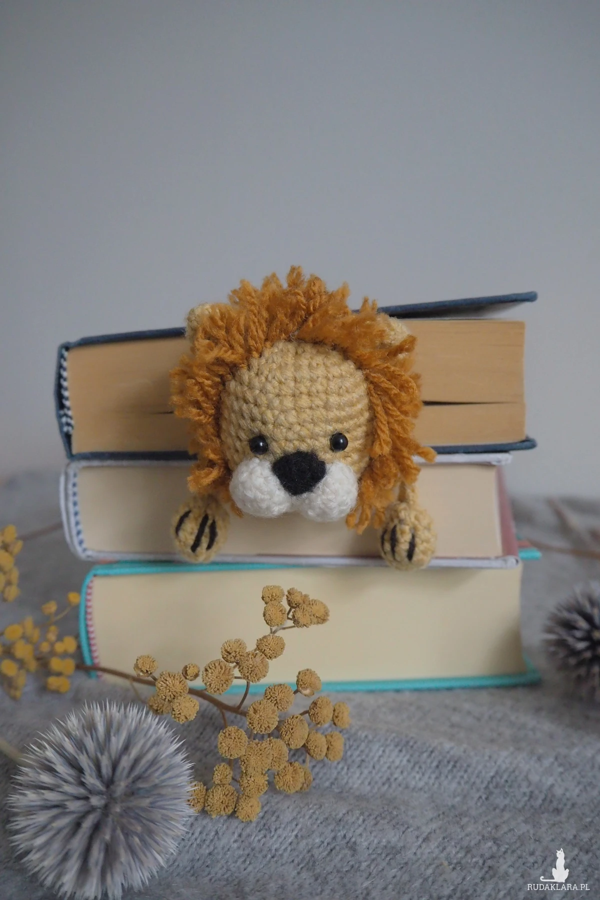 Zakładka do książki z sympatycznym lewkiem wykonana z włóczki na szydełku.