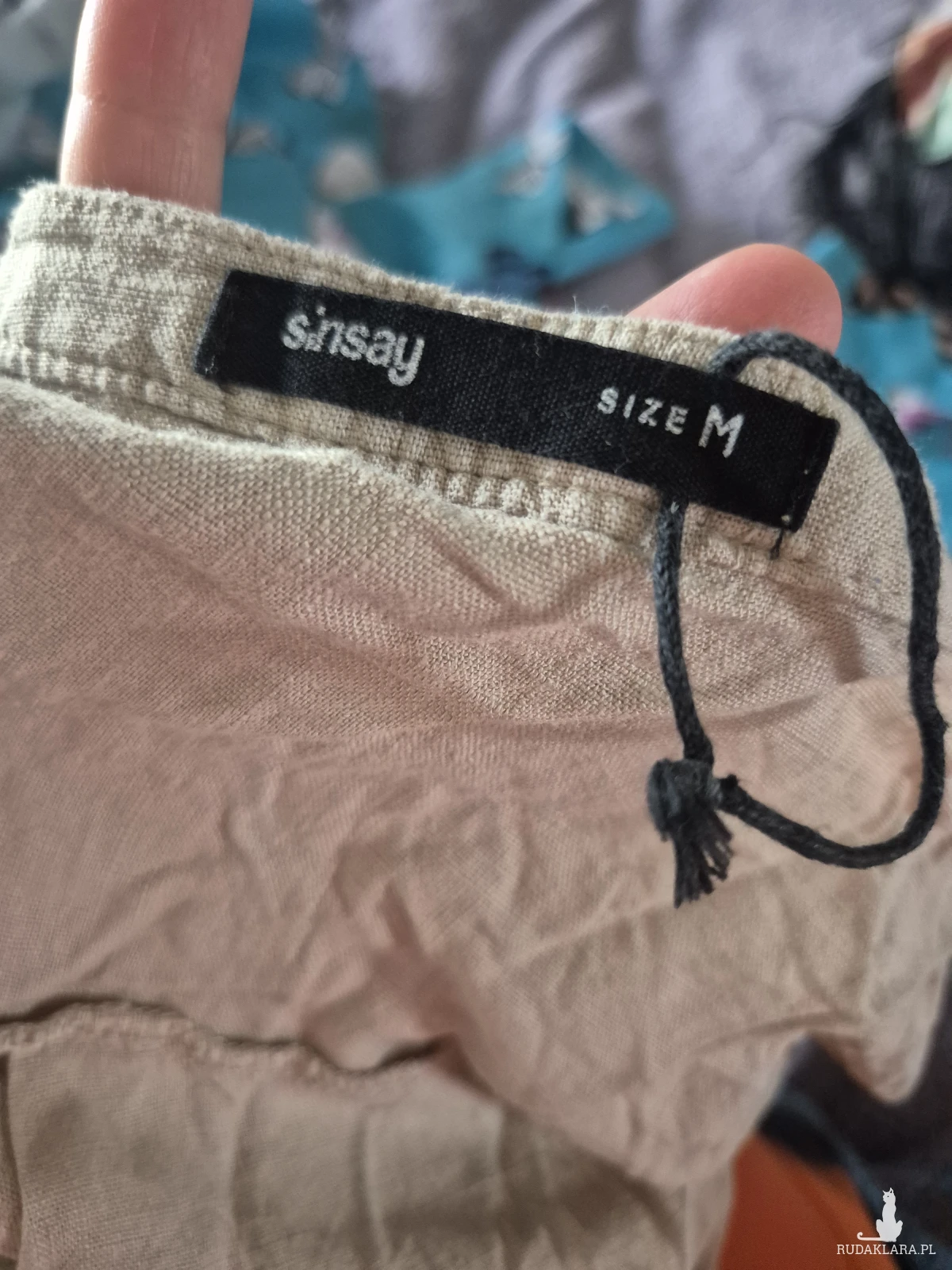 Bluzka firmy Sinsay wiskoza i len rozmiar M odległość pacha na płasko 55 cm długość całej bluzki 83 cm rękawki podpinane w stylu Safari długość całości do 45 cm polecam