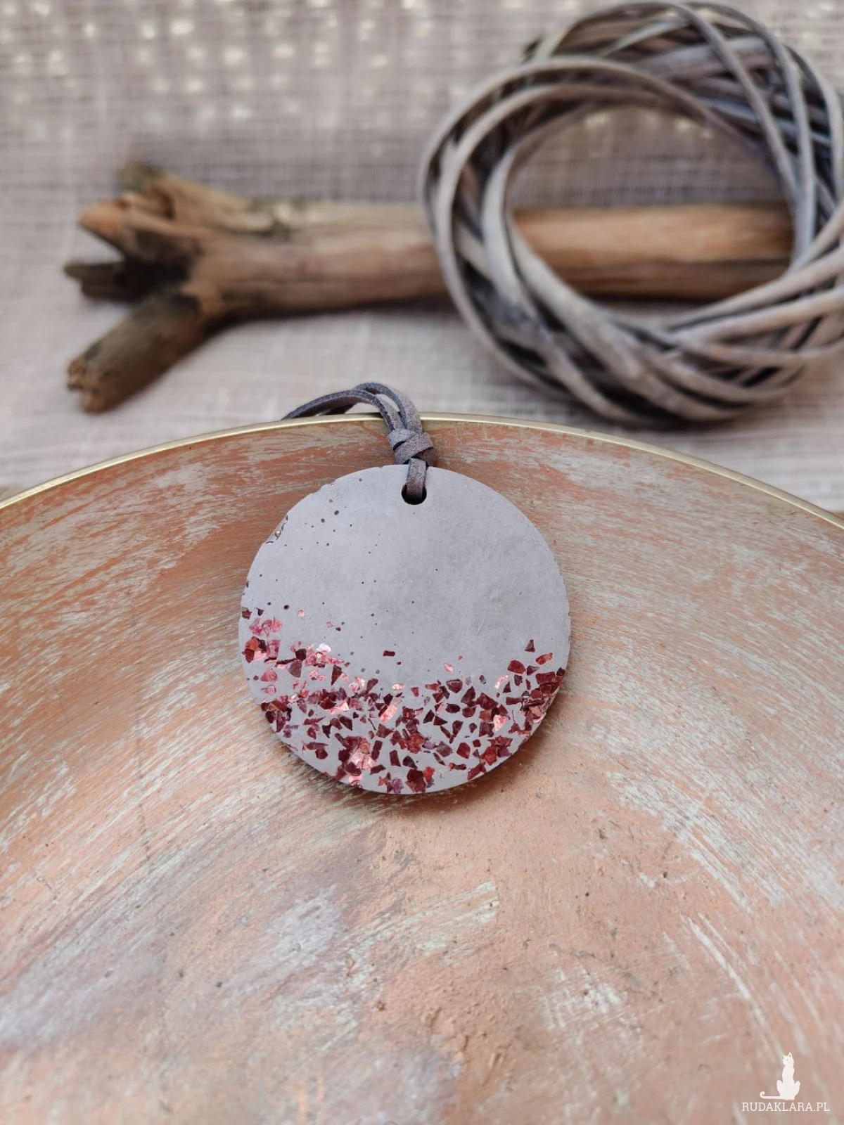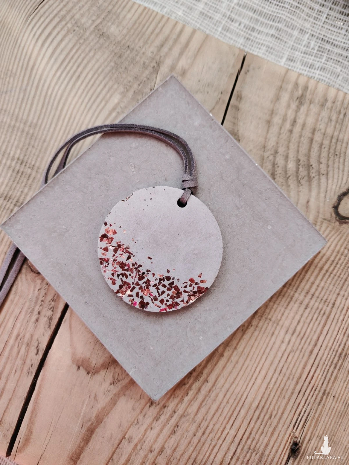 Wyjątkowy wisior wykonany z betonu to propozycja dla osób ceniących nowoczesny design i nieoczywiste materiały. Surowa, matowa powierzchnia została przełamana subtelnym, miedzianym akcentem, który dodaje całości charakteru i przyciąga wzrok. Zawieszony na rzemieniu z możliwością regulacji długości, doskonale dopasowuje się do różnych stylizacji – od codziennych po bardziej wyraziste. To biżuteria, która podkreśla indywidualność i wyróżnia się na tle klasycznych dodatków.