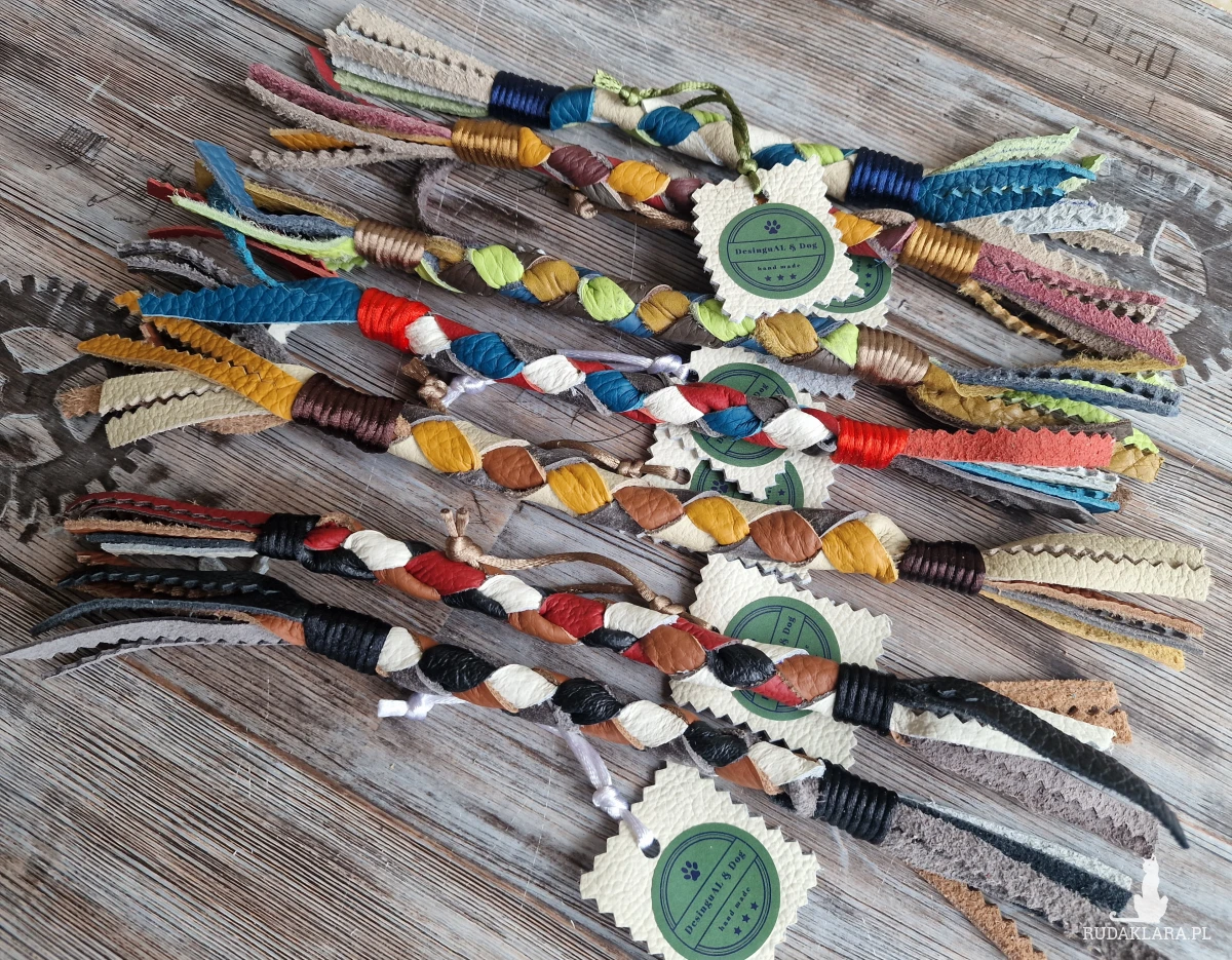 Zabawki dla psów wykonane z naturalnej skóry.