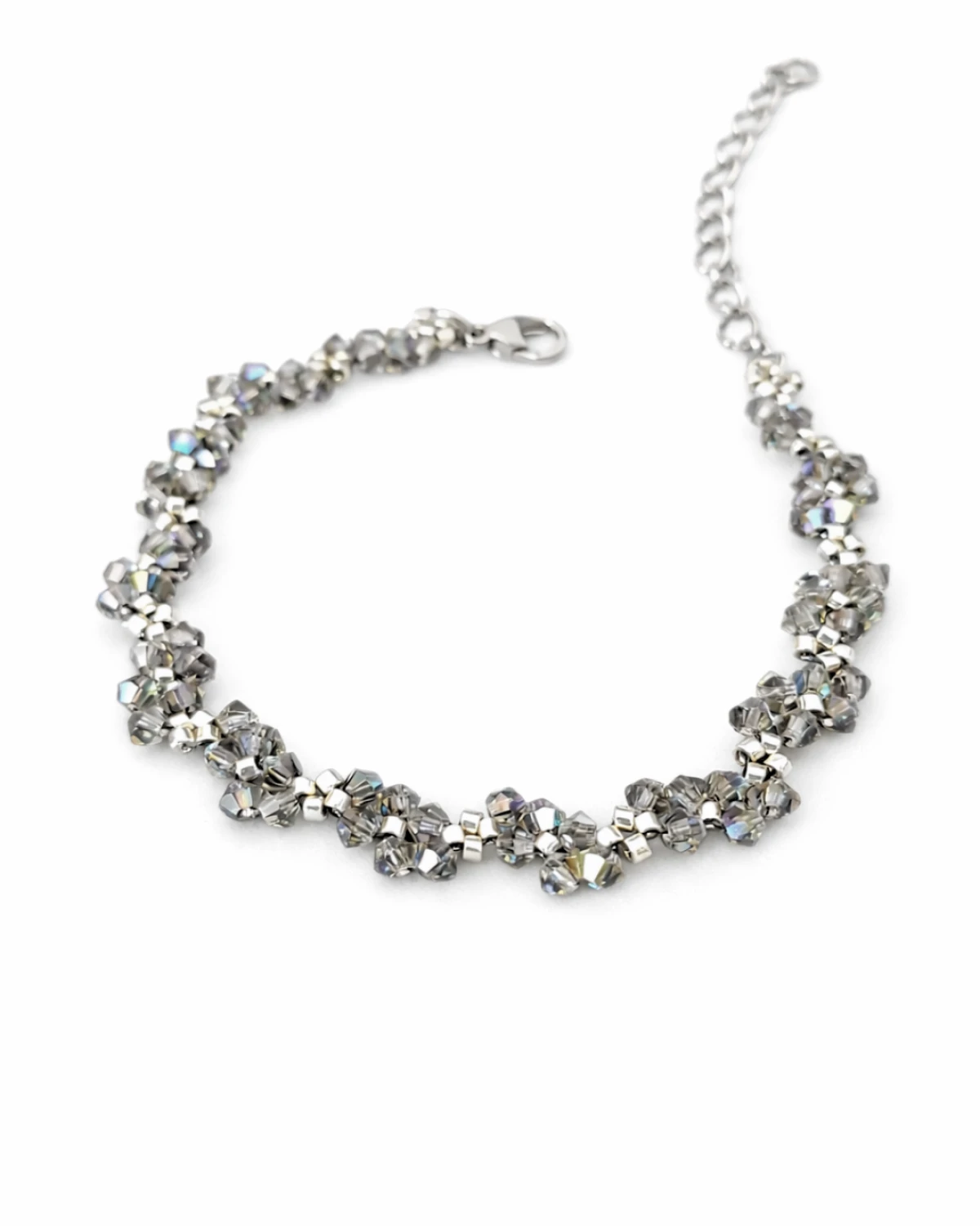 Srebrzysto-grafitowe kryształki niosą ze sobą aurę elegancji i siły. To kolor, który symbolizuje pewność siebie, niezależność i dobry gust. Dzięki subtelnemu połyskowi bransoletka emanuje luksusem, ale w sposób nienachalny - idealny dla kobiet, które chcą podkreślić swoją klasę i indywidualny styl. To dodatek, który sprawia, że czujesz się wyjątkowa w każdej sytuacji.