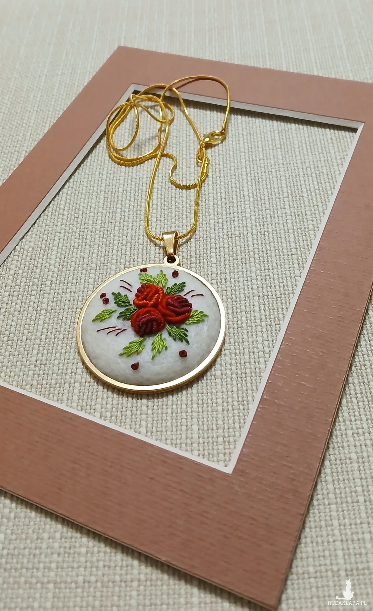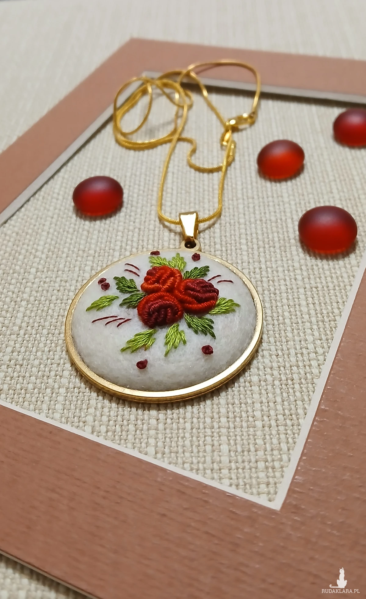 Klasyka kolorystyki oraz harmonia kompozycji to nieszablonowy wisior stworzony właśnie dla Ciebie. Elegancja bordo i ecru to wisior, który dobitnie podkreśli Twoją kreację i sprawi, że poczujesz się wyjątkowo.