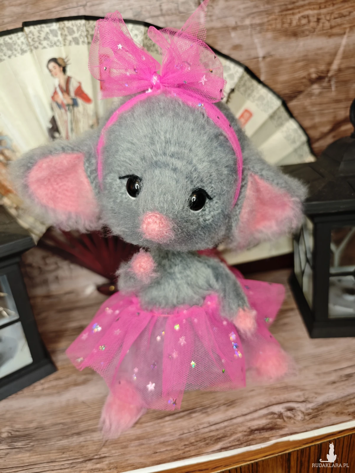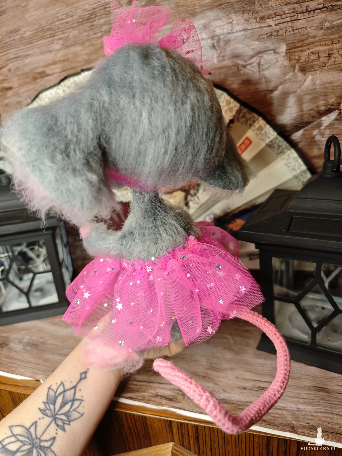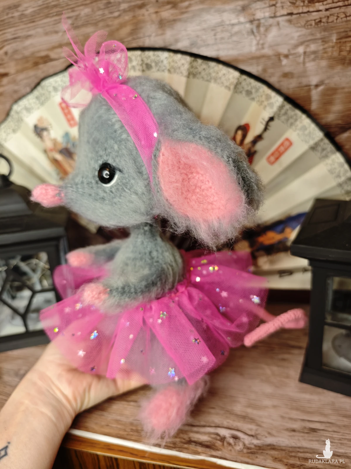 Wyjątkową, dużą myszkę wykonaną w całości ręcznie. Jest niesamowicie miękka, puszysta i ma uroczy, baletowy styl. Dzięki swoim rozmiarom i ruchomości prezentuje się jak prawdziwa postać z bajki!