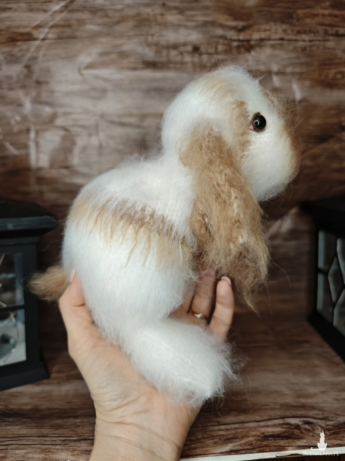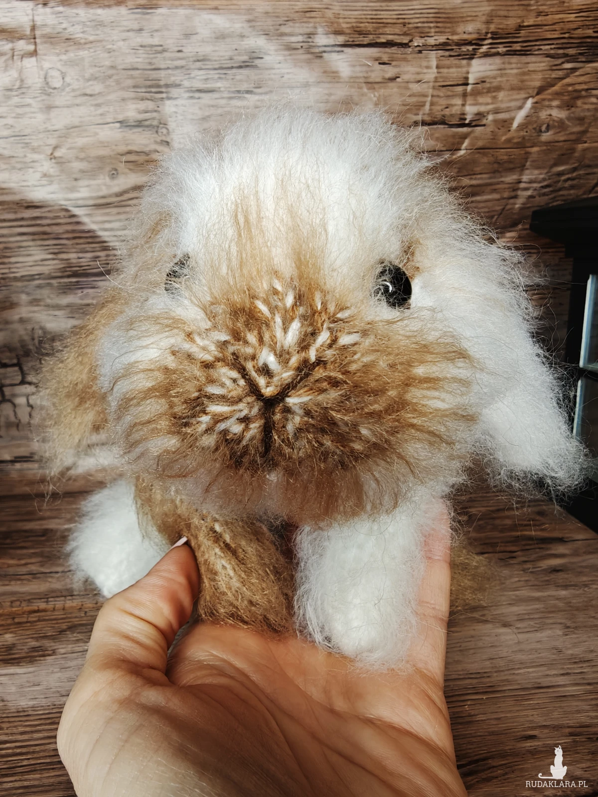 Autorski, ręcznie robiony króliczek, wykonany z dużą dbałością o detale.