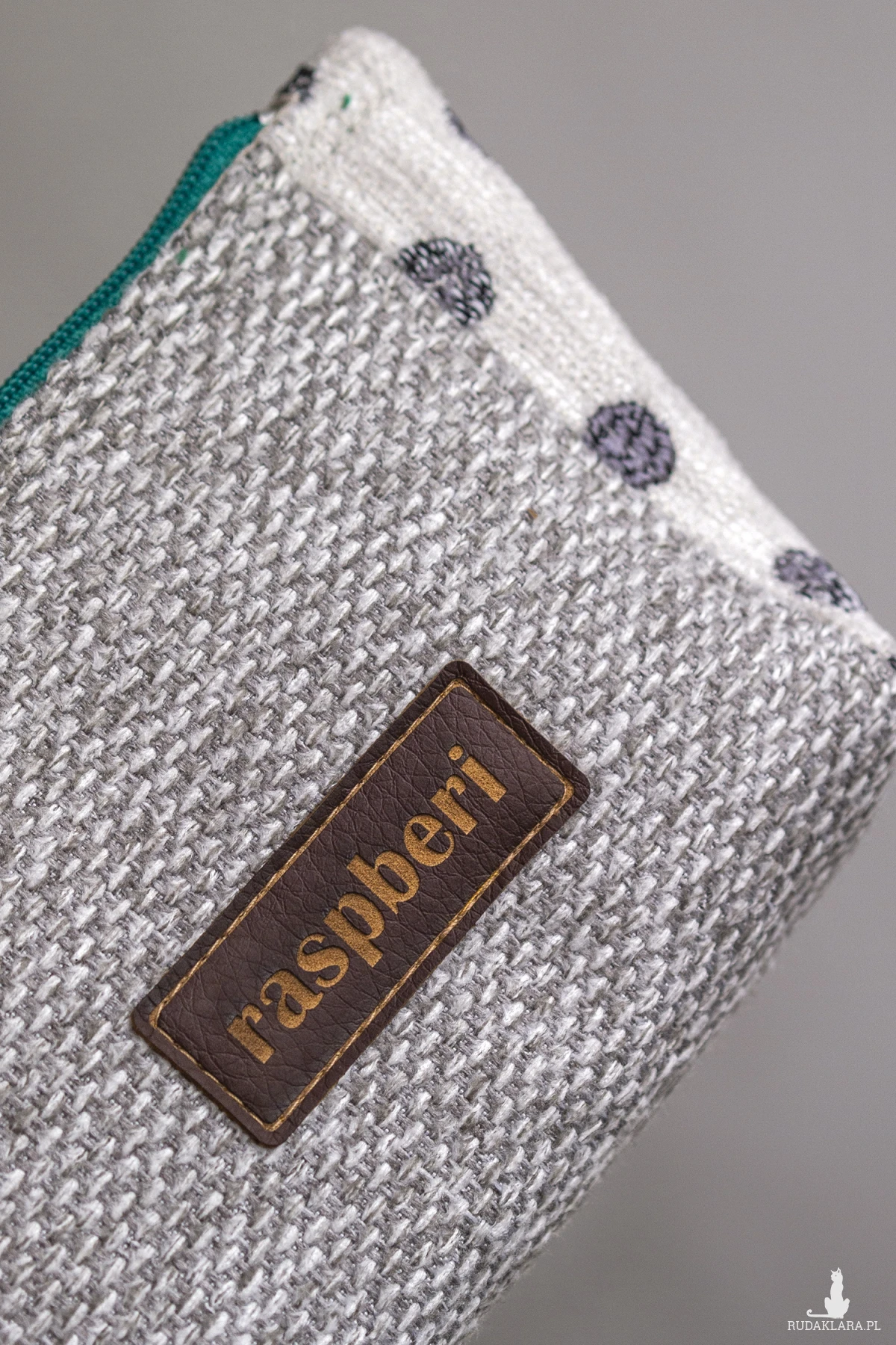 Etui na klucze wykonane z szarej plecionki i żakardu w grochy. Stworzone w duchu no waste.