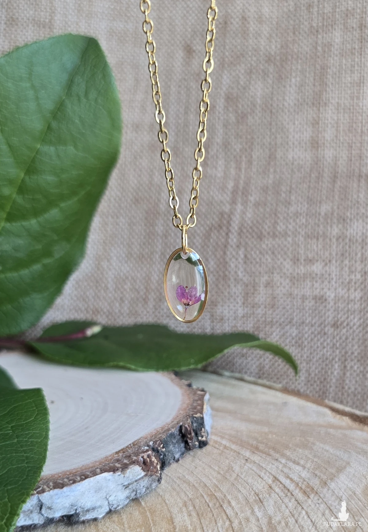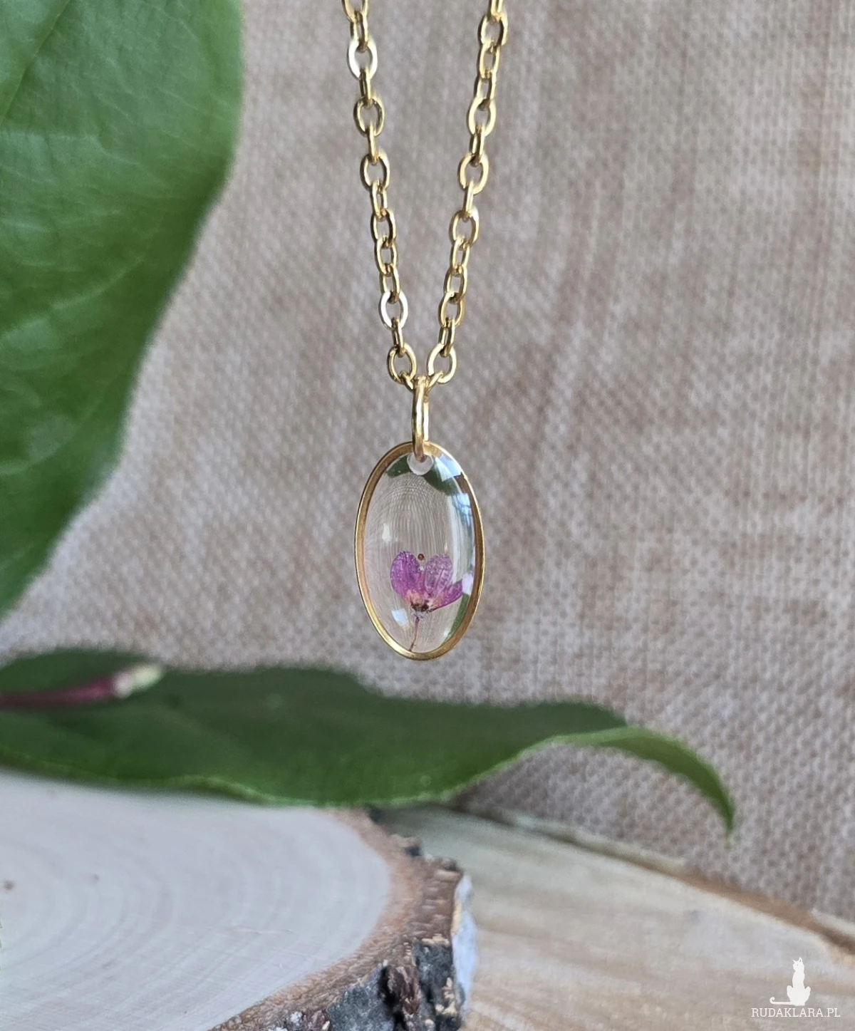 Oferuję Państwu unikalną biżuterię. Zawieszka jest wykonana z suszonych kwiatów i żywicy epoksydowej. Biżuteria jest wspaniałym i oryginalnym prezentem na lata.