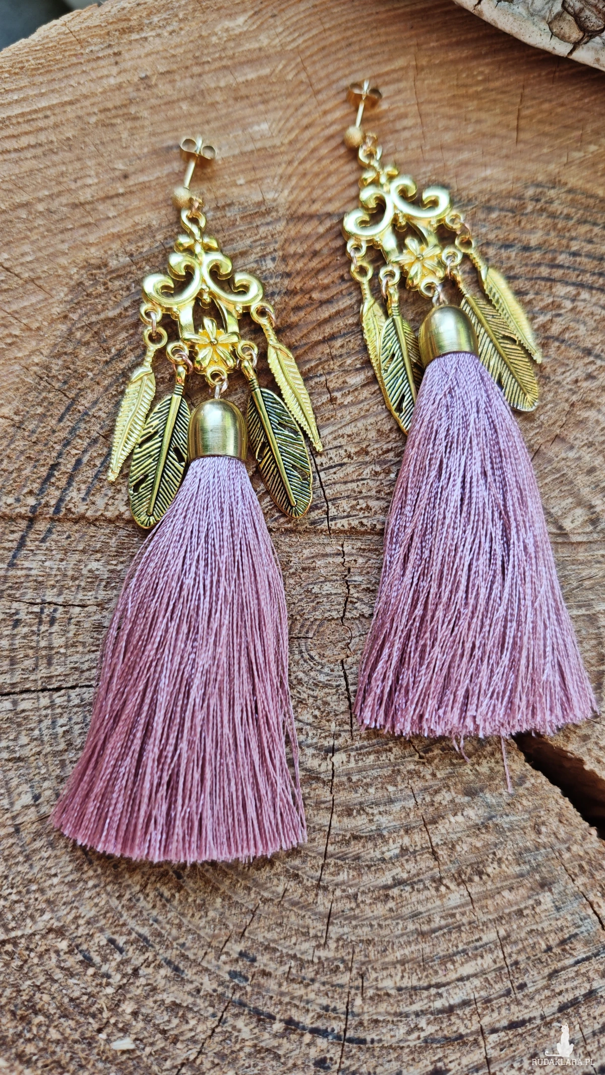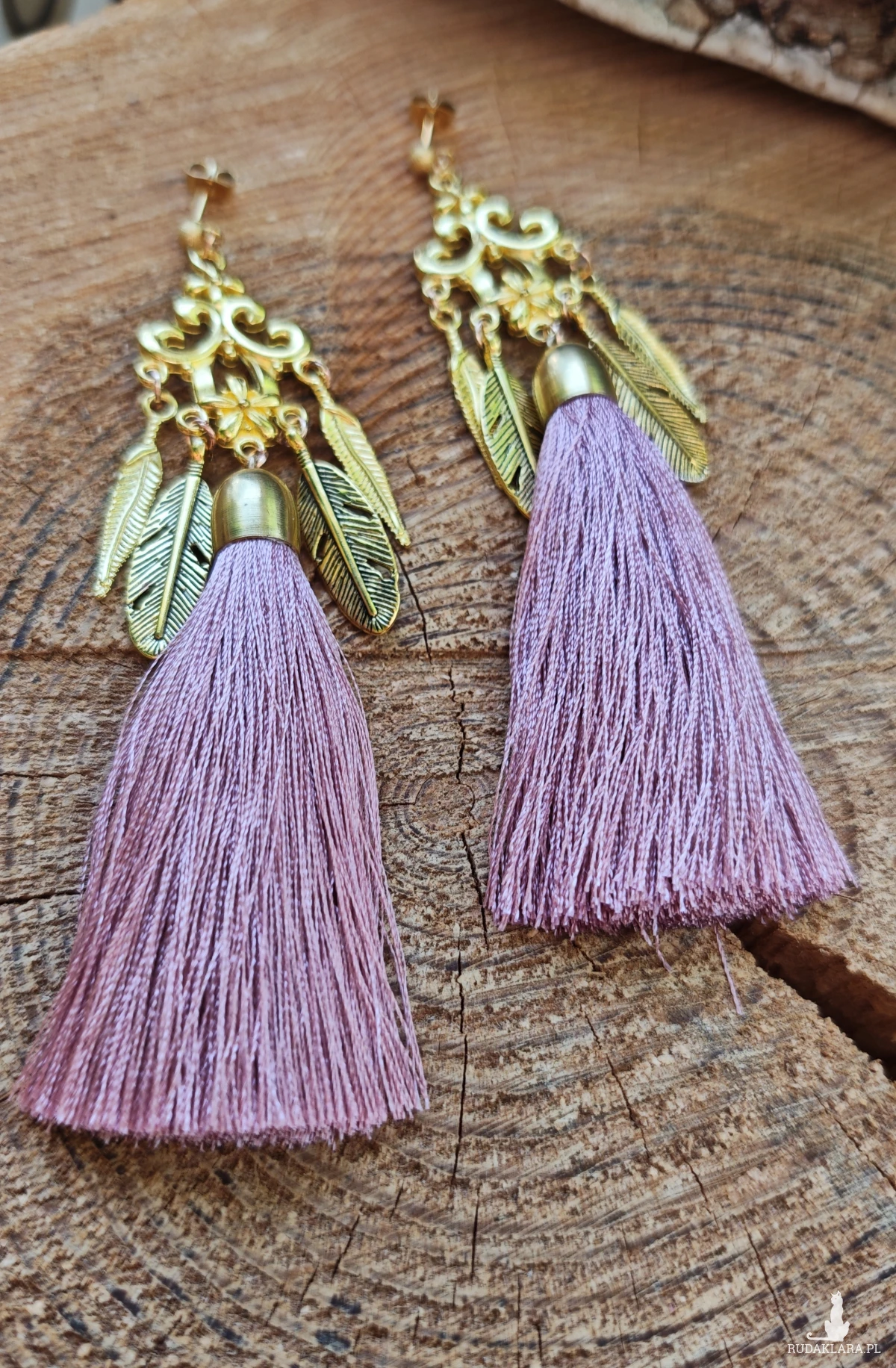 ,, złoto w beżu,, to zwiewne i lekkie kolczyki wykonane z chwosta w odcieniach beżu i metalowych elementów w kolorze złota. Kolczyki zawieszone są na ozdobnych biglach typu sztyft wykonanych ze stali szlachetnej.