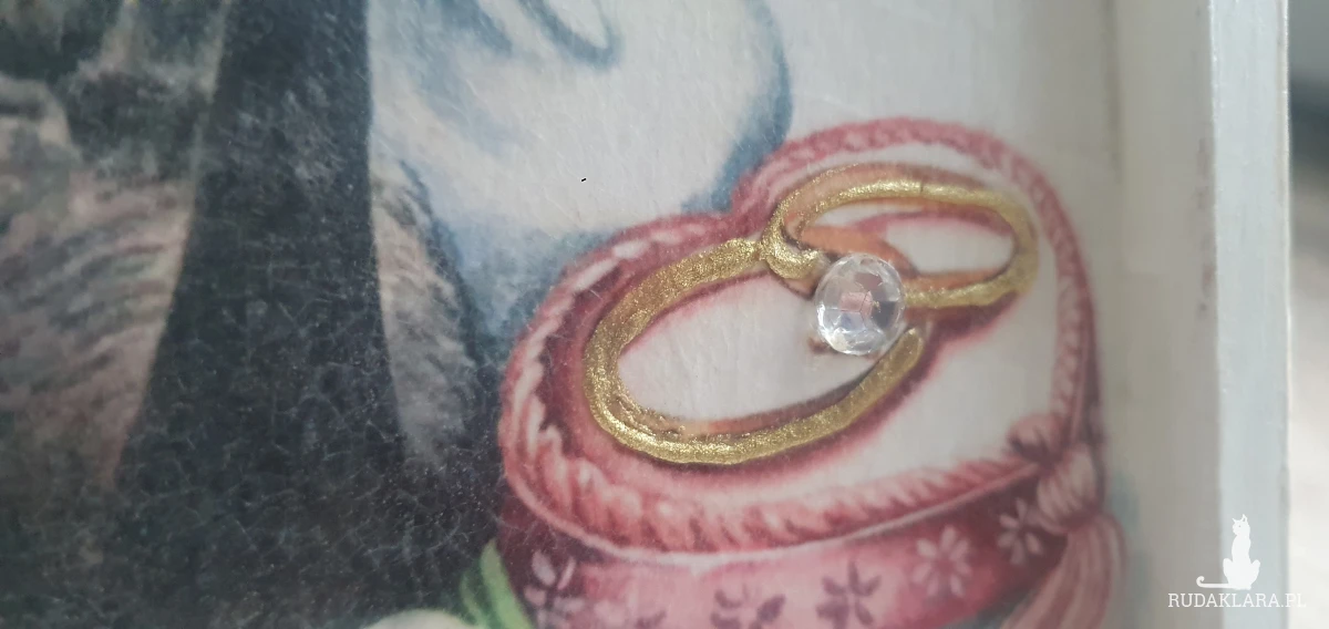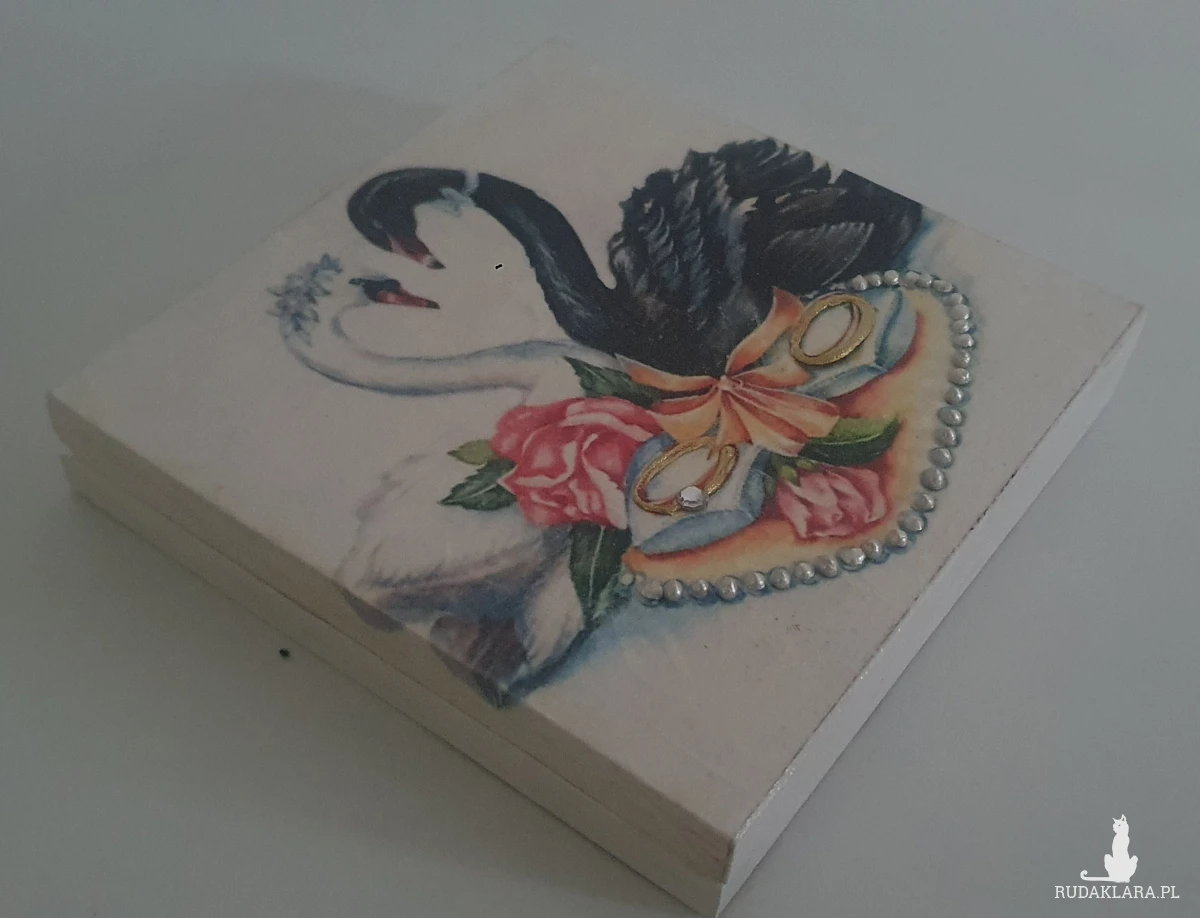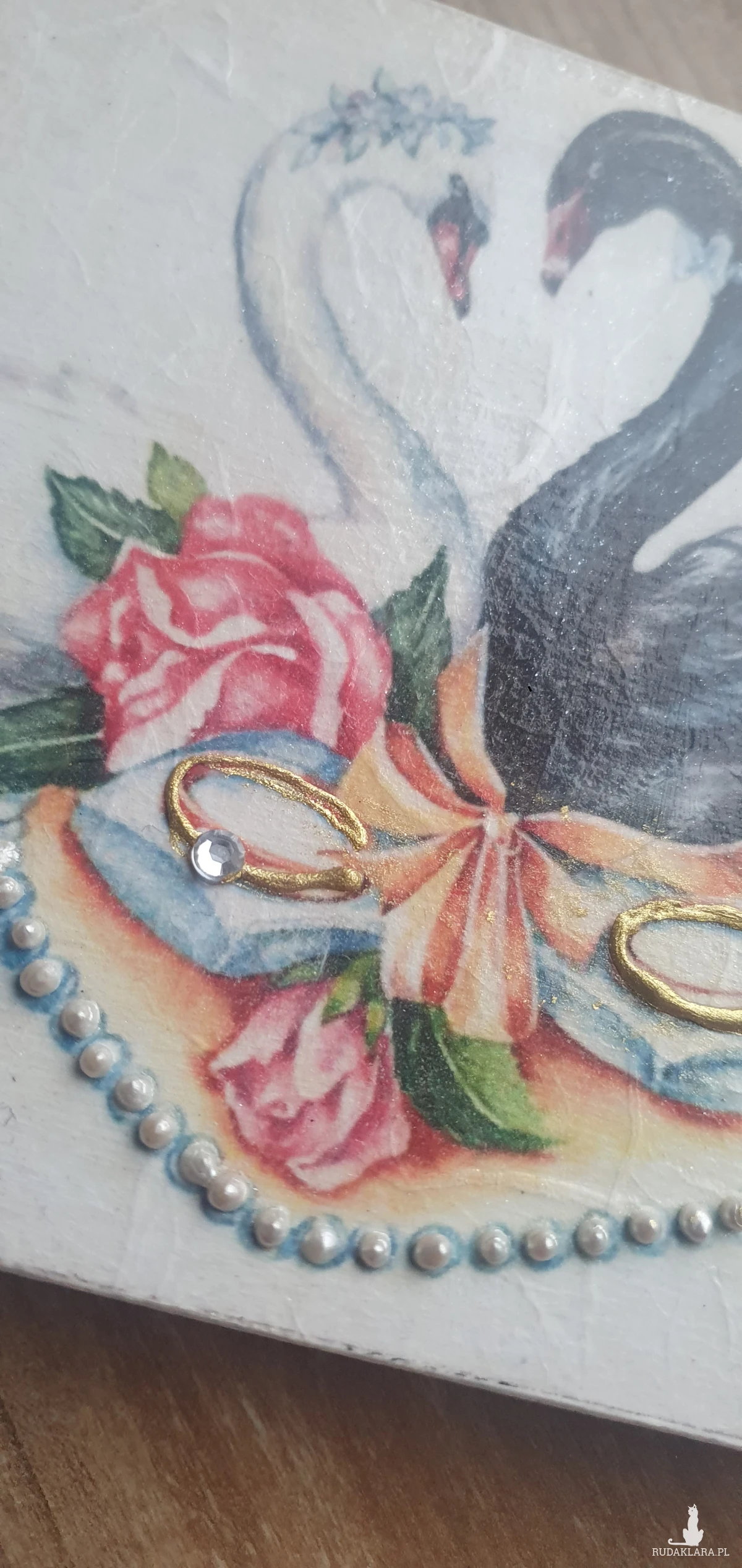 Starannie wykonane, metodą decoupage, przyozdobione perełkami. Jest jedyne w swoim rodzaju, unikatowe