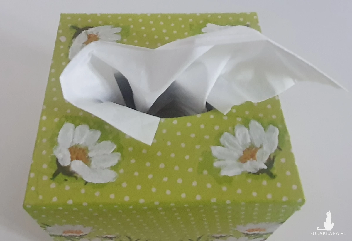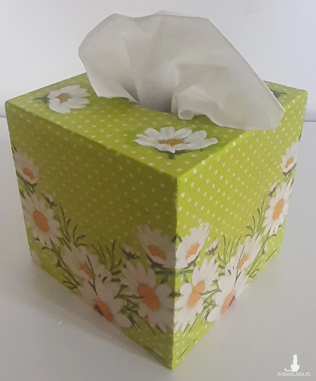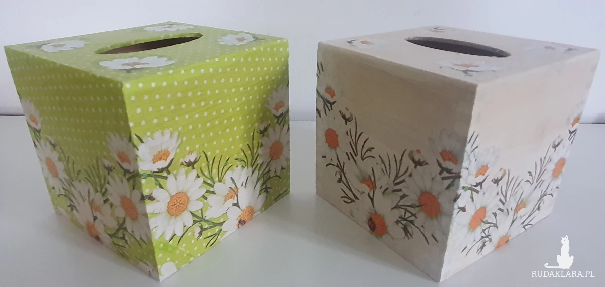 Sprzedam drewniany kwadratowy chustecznik ze stokrotkami
