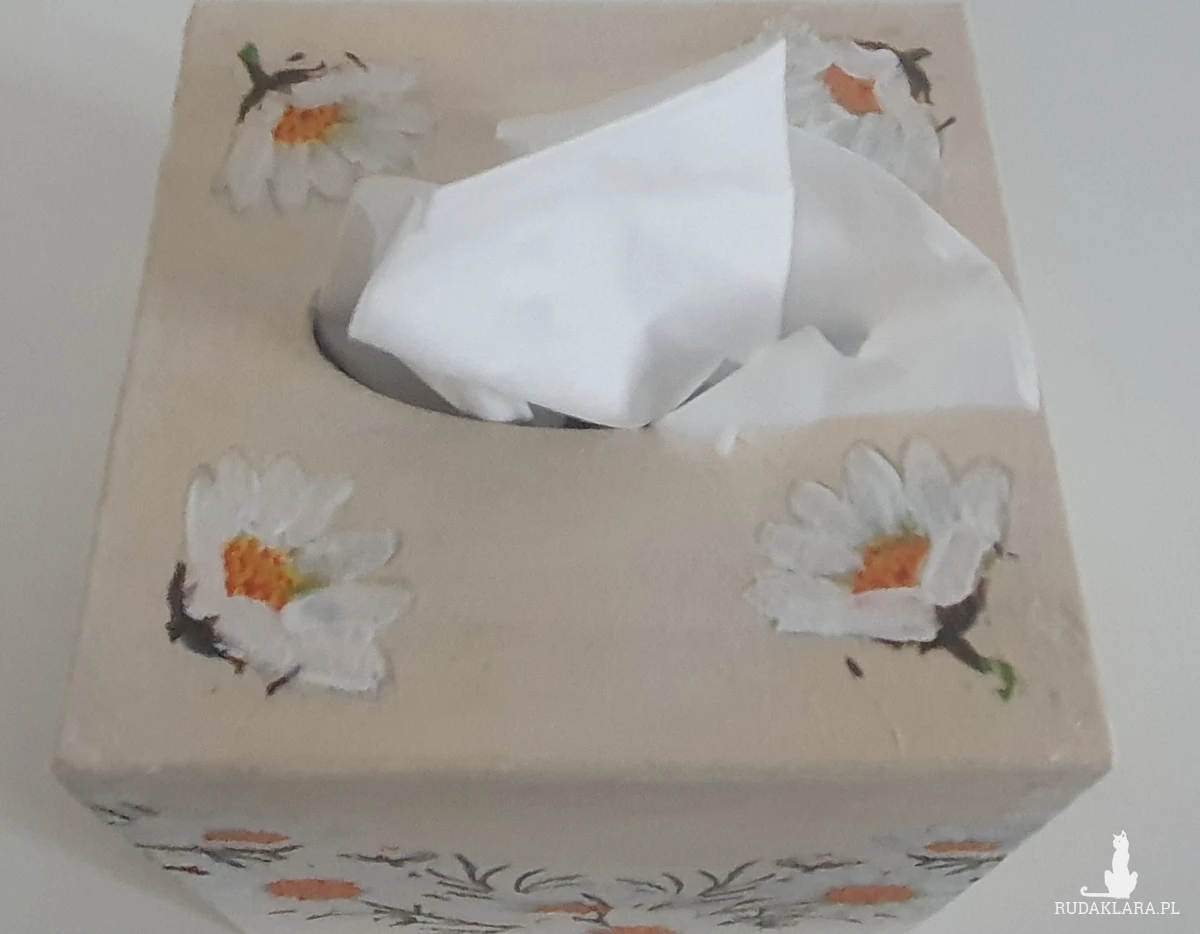 Sprzedam drewniany kwadratowy chustecznik ze stokrotkami